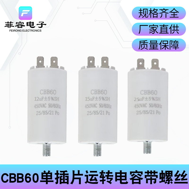 CBB60 ランニングコンデンサ シングルインサート ネジ付き 5UF6UF8UF10UF12UF25UF~100UF/450V