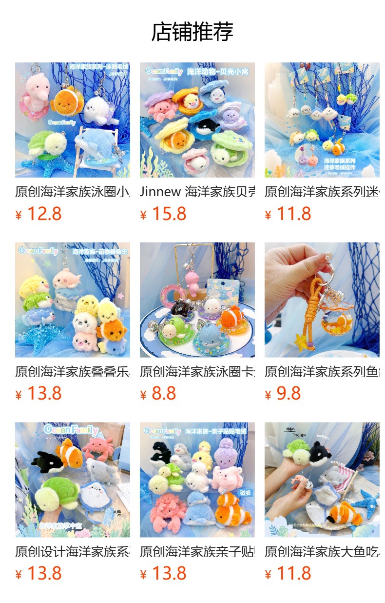 原创海洋家族亲子贴贴毛绒挂件可爱钥匙扣公仔玩偶礼品挂饰批发