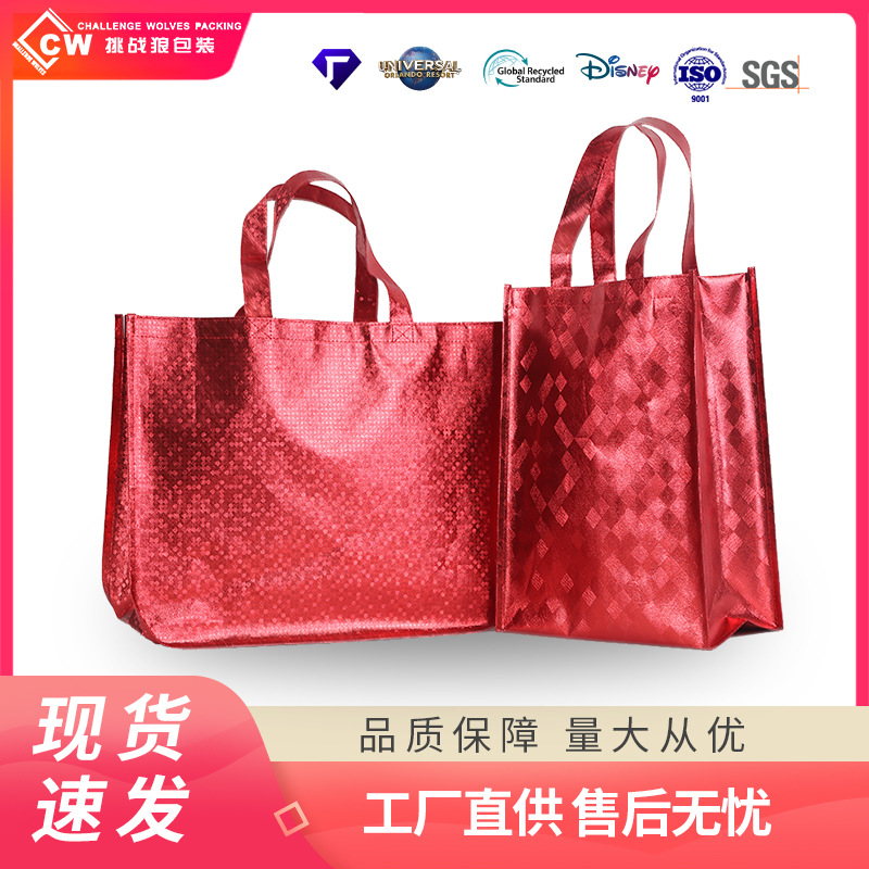 レーザー被膜レジ袋アルミメッキ車縫い不織布手提げ袋お祝い新年ギフトバッグは多色ロゴを印刷できます