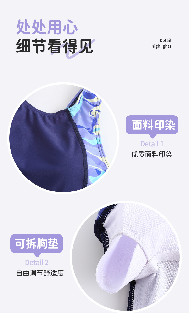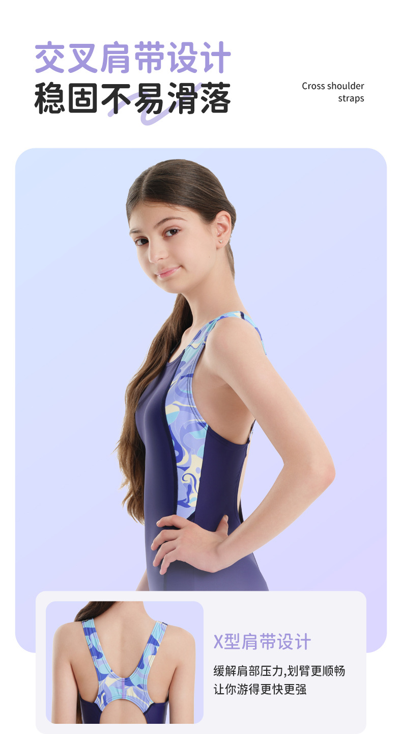 班菲儿童泳衣女孩中大童专业训练连体平角泳装游泳竞技大码有胸垫