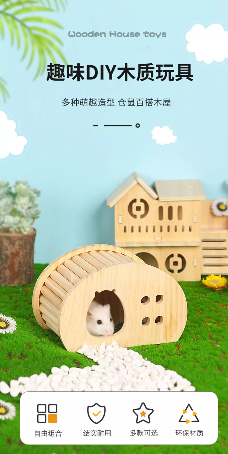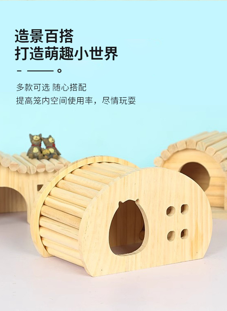 ハムスター造景用品避難屋プラットフォーム雲梯金糸熊木製防水小家小別荘高颜値