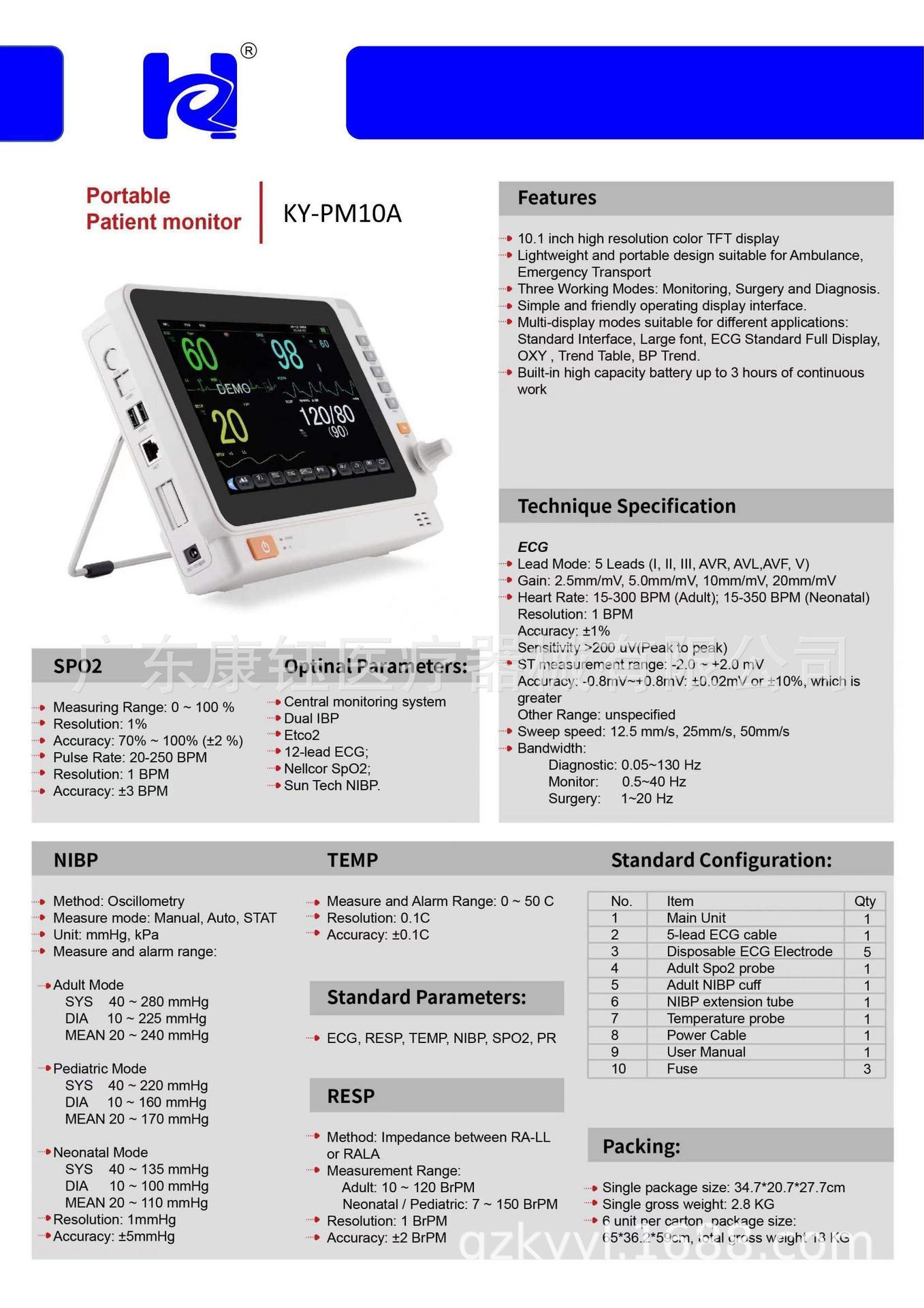 貿易輸出 10inch ポータブルマルチパラメータモニター KY-PM10A ポータブルモニター
