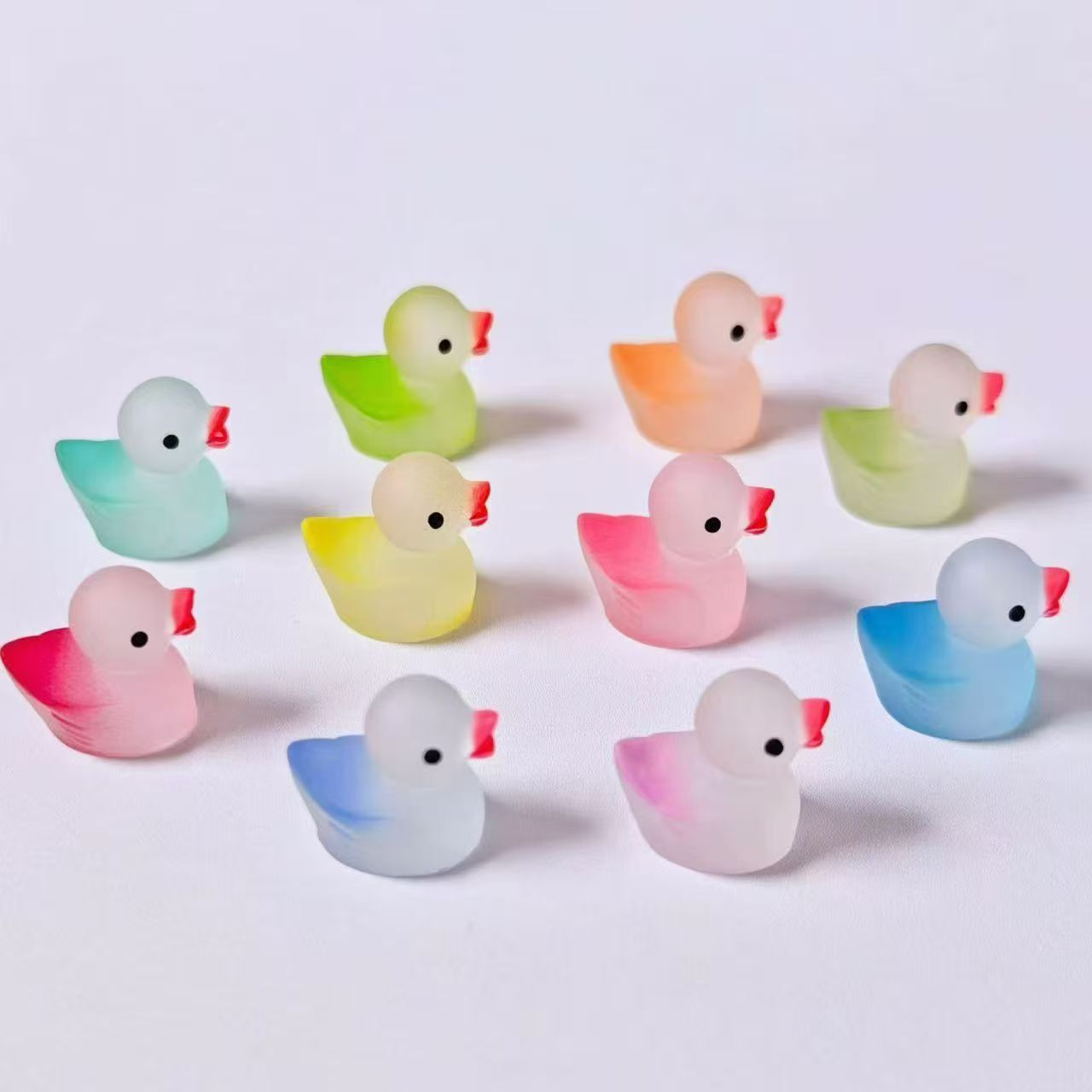 跨境树脂渐变夜光磨砂小鸭子diy 饰品发饰配件迷你车载创意微景观