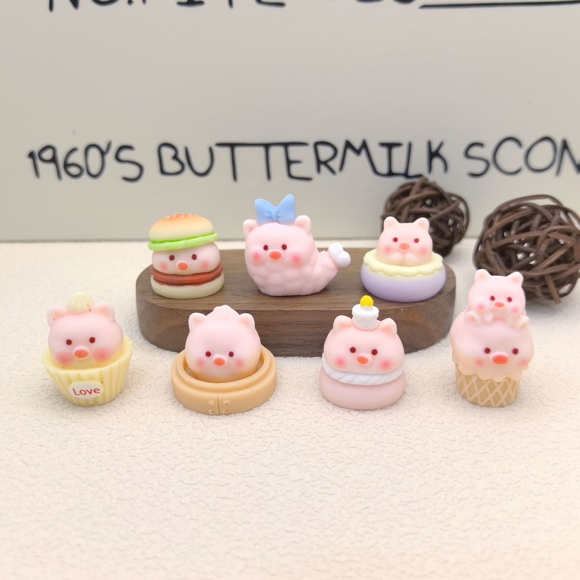 食完小猪立体卡通桌面摆件 diy饰品树脂配件盲袋装饰挂件汽车摆件