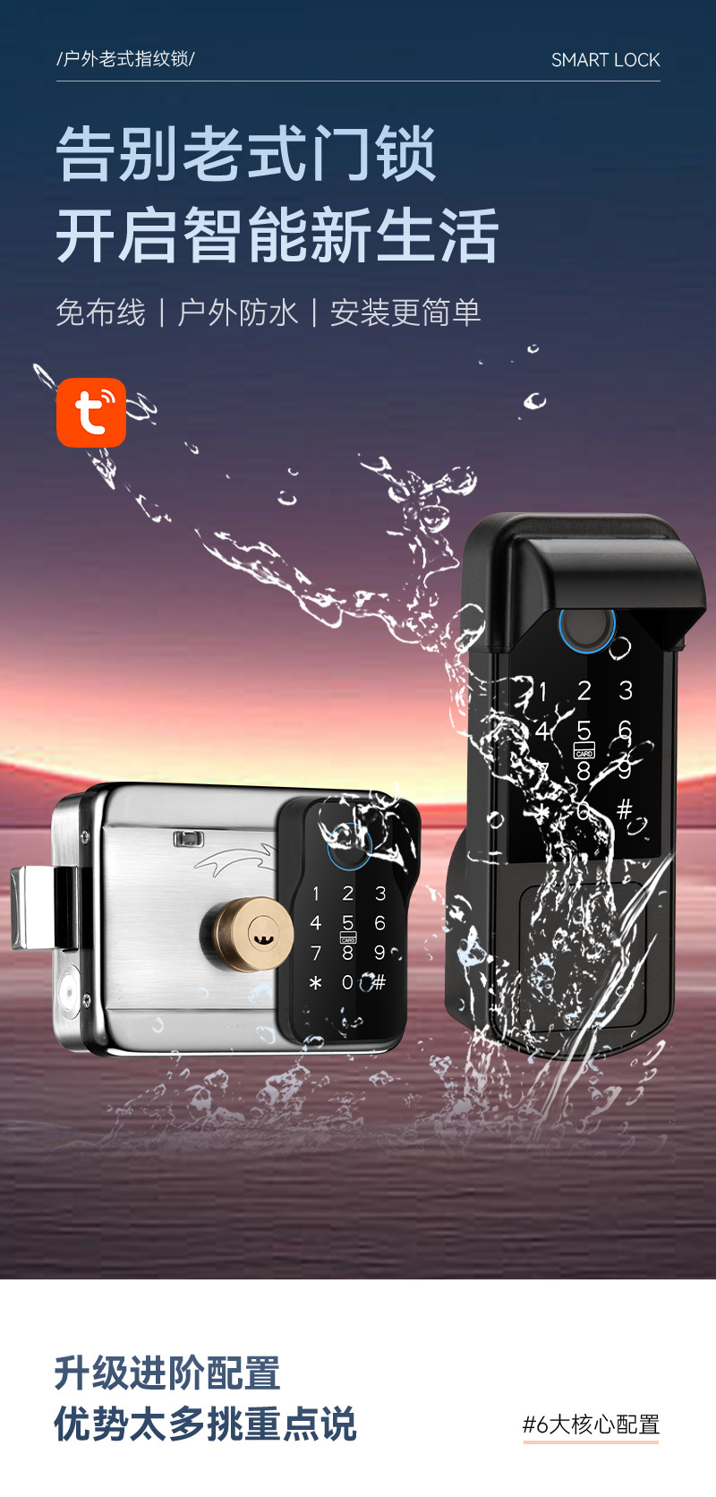 防水屋外鉄ドア指紋ロック通錠tuyaスマートドアロックマンションパスワード牛頭錠メーカー
