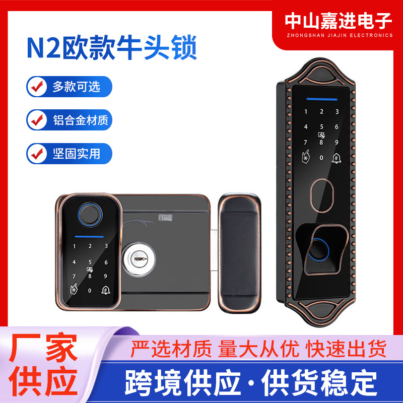 新型牛頭ロックスマートロック家庭用旧式牛頭指紋暗号ロック鉄門防犯賃貸住宅管理ドアロック
