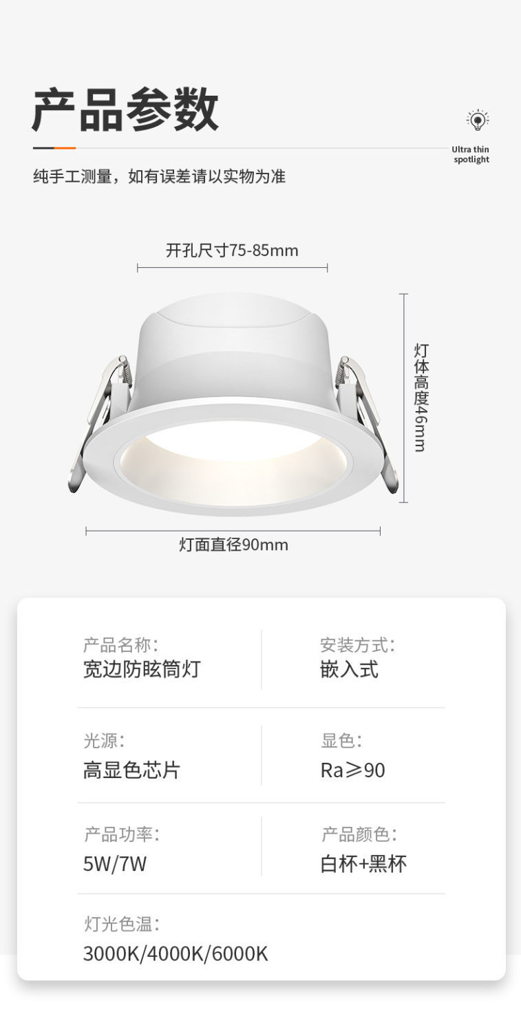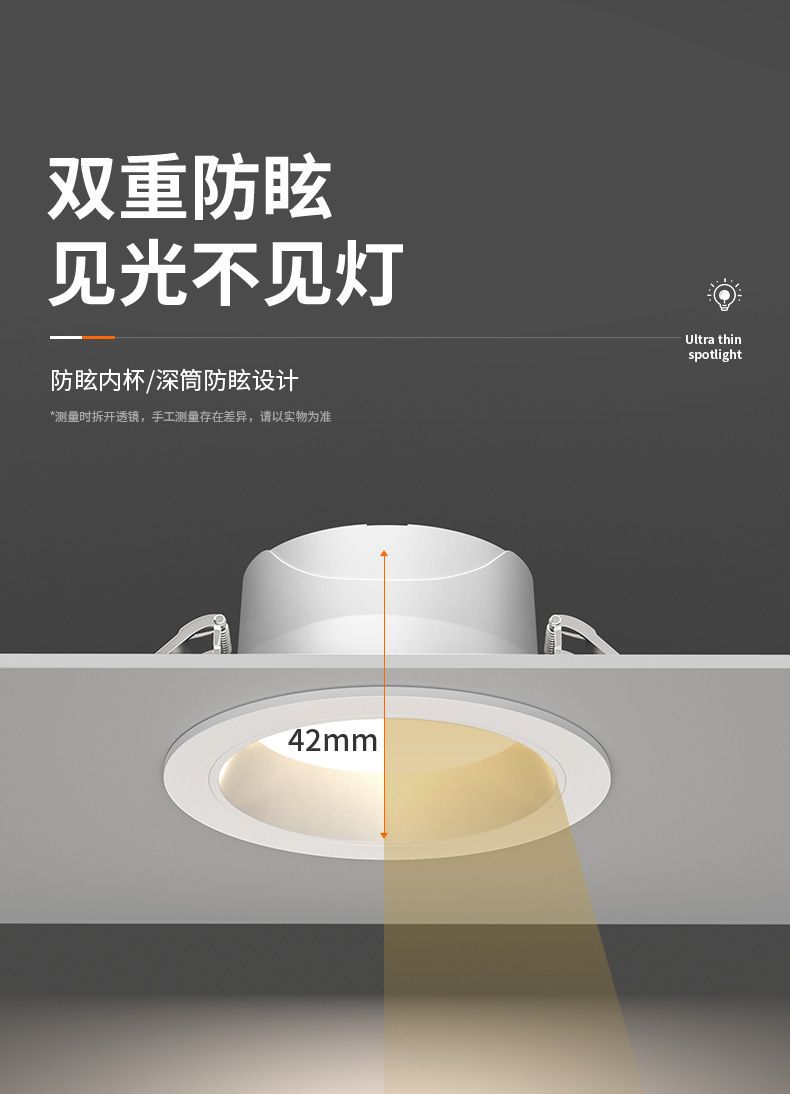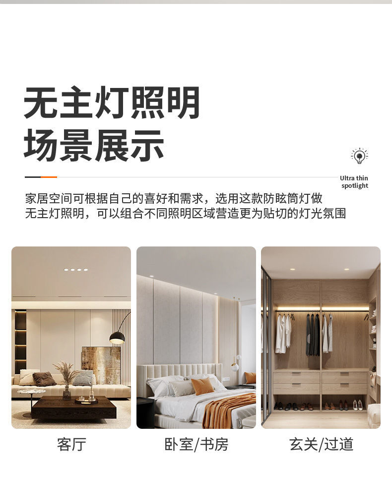 全光谱led窄边防眩护眼筒灯天花灯酒店家用卧室嵌入式暗装75开孔
