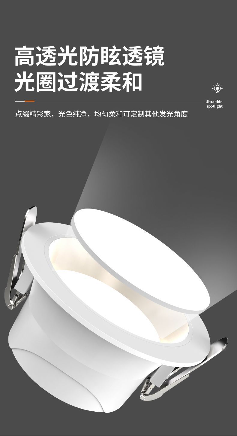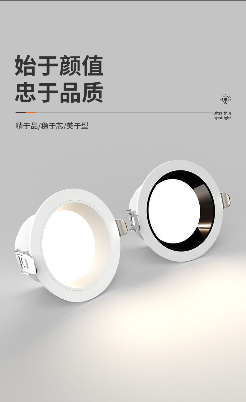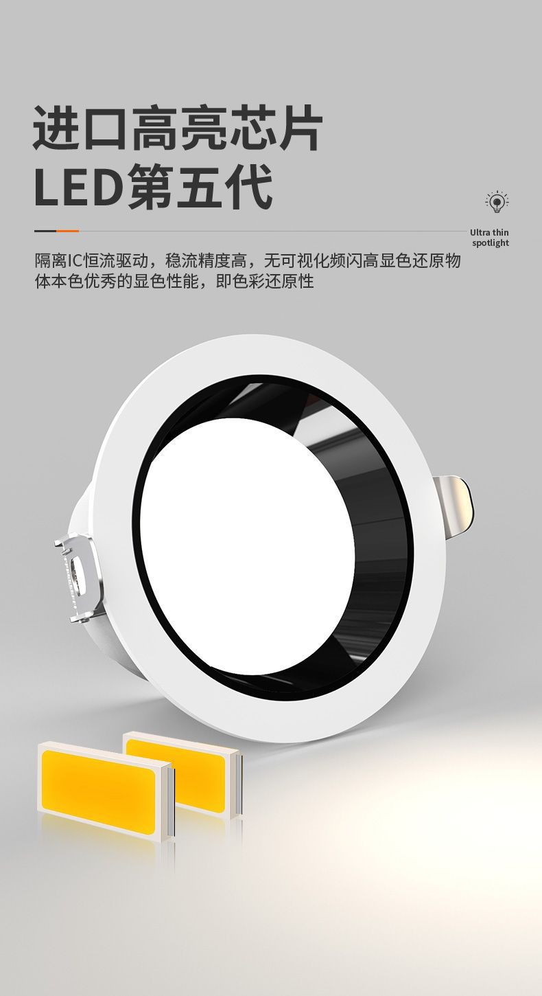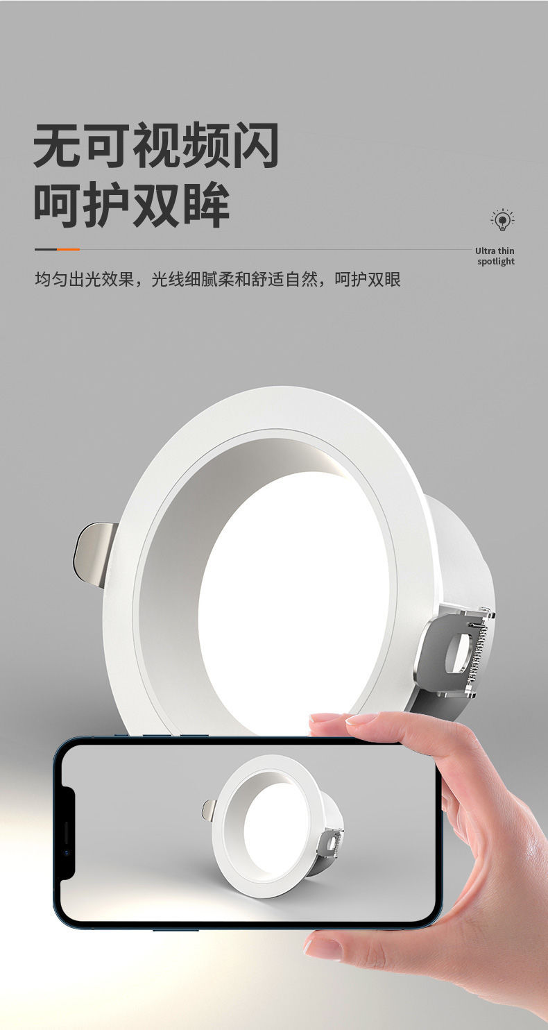 全スペクトルダウンライトled埋め込み式リビングルーム家庭用超薄型スポットライト防グレア穴ランプ75mm無主灯