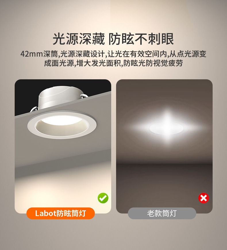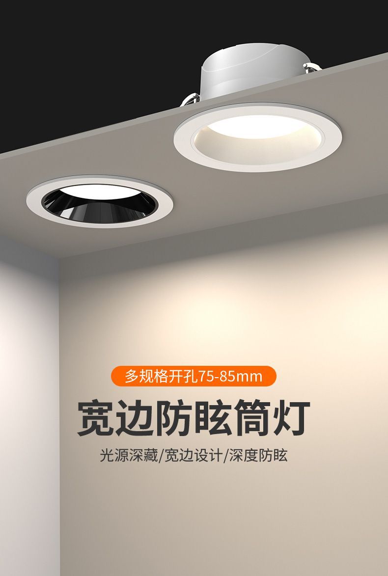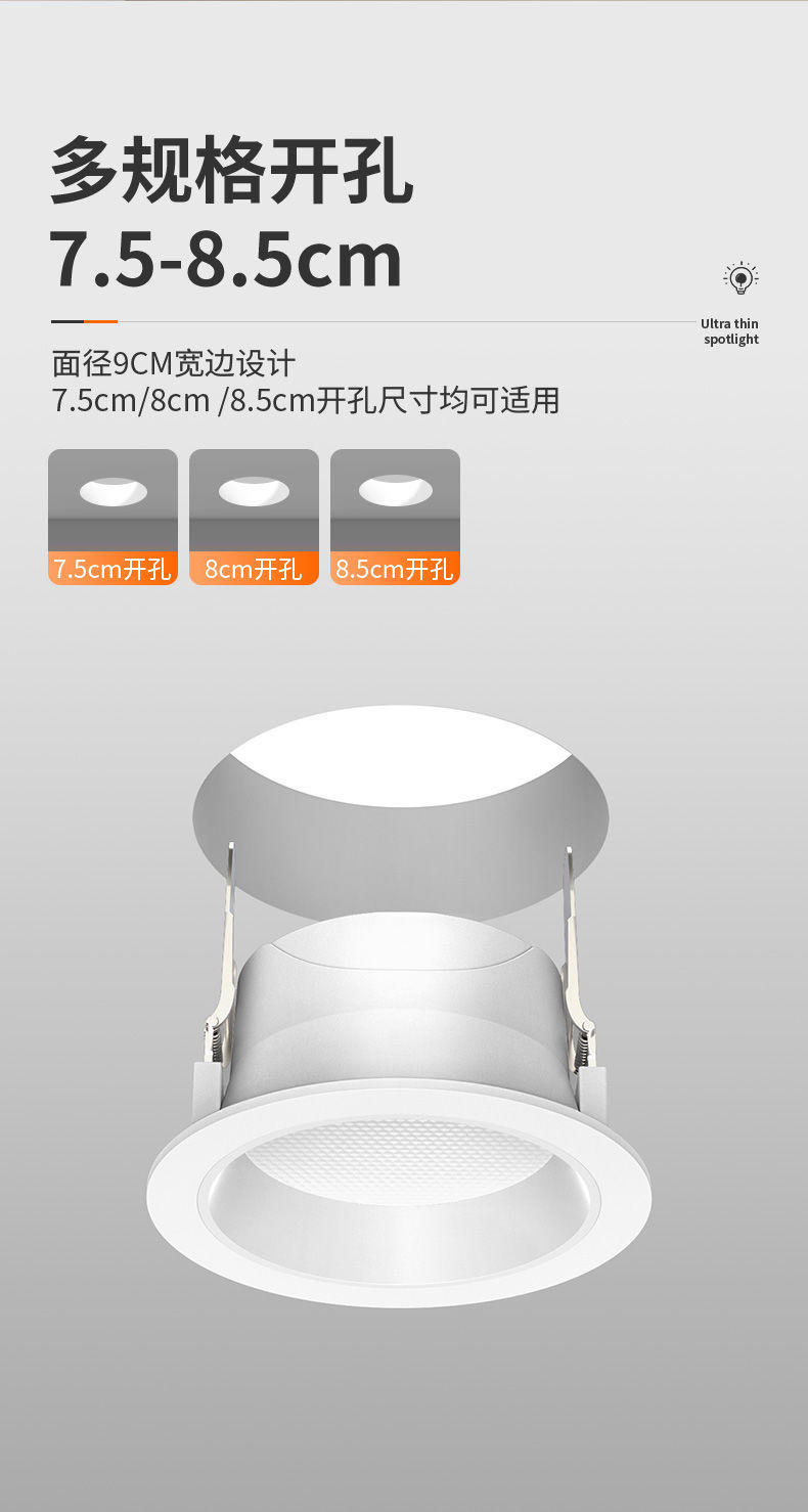 led防眩晕筒灯嵌入式天花洞灯暗装客厅过道简灯开孔7.5公分 8.5cm