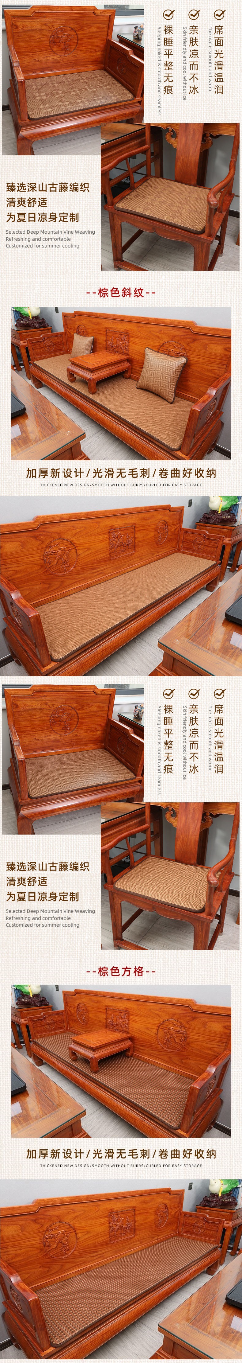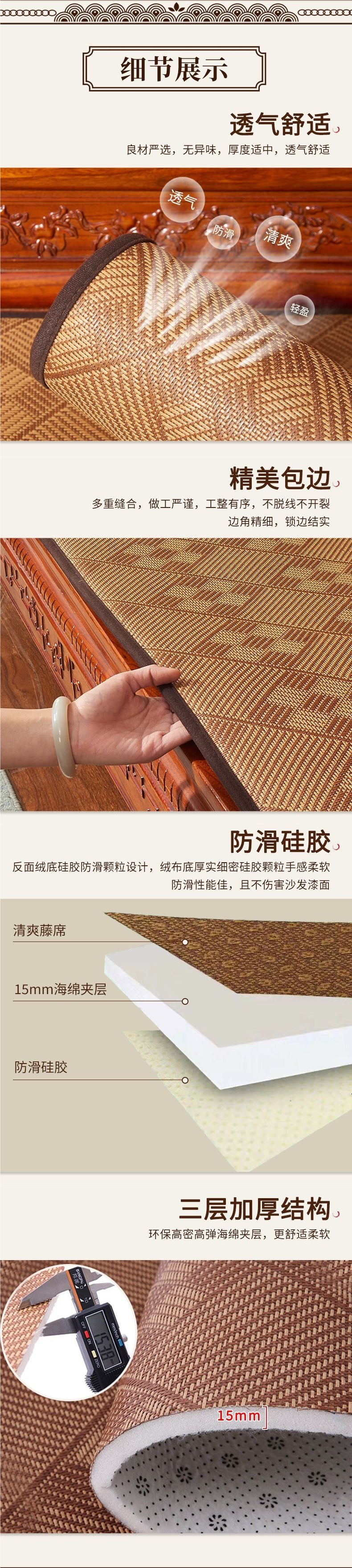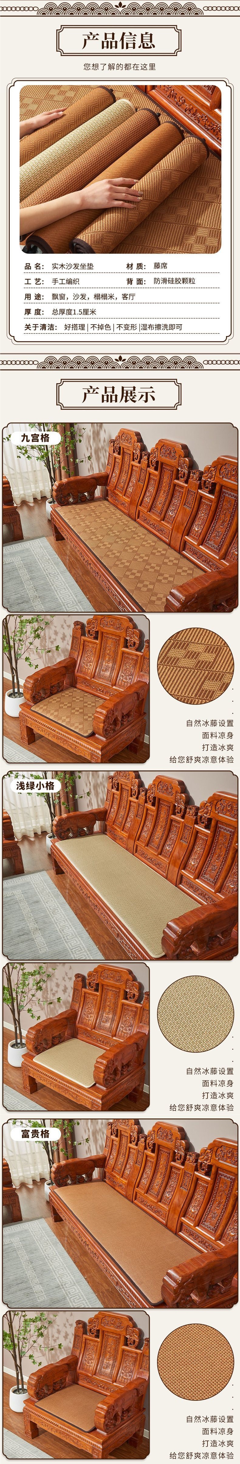 マホガニーソファ籐マットクッション夏マット無垢材椅子クッション通気性滑り止め厚みのある3人用メーカー直販