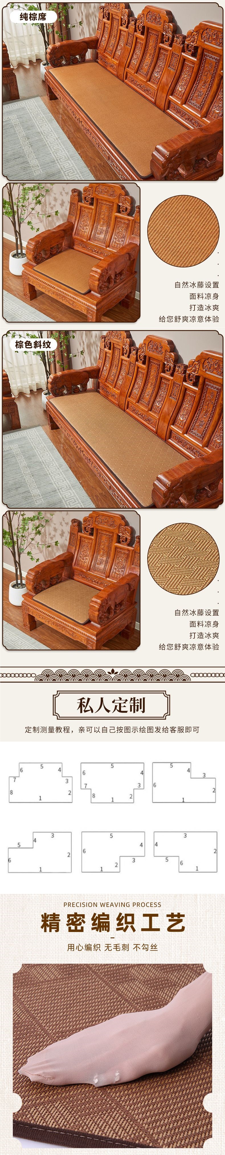 新中式紅木ソファクッション 夏用涼席 椅子クッション 無垢材椅子シートクッション 滑り止めソファクッション 卸売 冷感