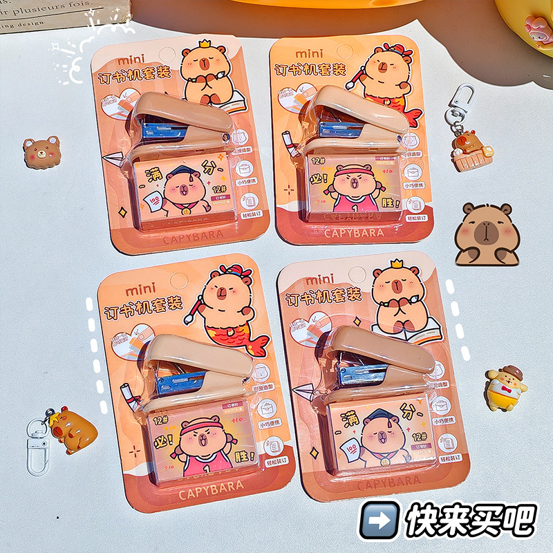 カピバラ公仔ホッチキスセット学生用ミニトランペットホッチキスオフィス製本機文