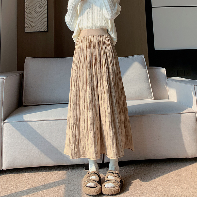 高級秋冬スカート、ミドル丈、肉感カバー、人気のAラインスカート、女性用スリム立体ニットアンブレラスカート