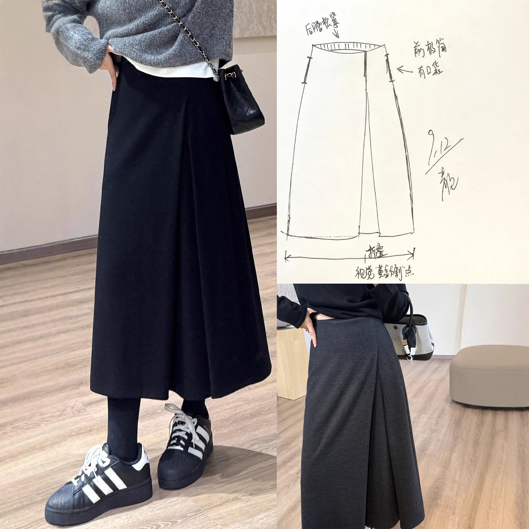 フィッシュテールニットスカートレディース2025春秋冬新作ハイウエストAラインヒップカバードレープロングスタイル