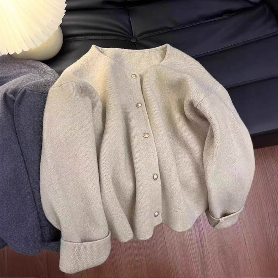 丸首のニットのカジュアルセーターの女性2025春秋の新型の韓国系のカーディガンの外は長袖のゆったりしている百合の上着を着ます。
