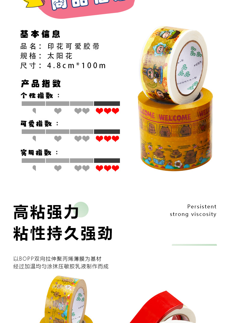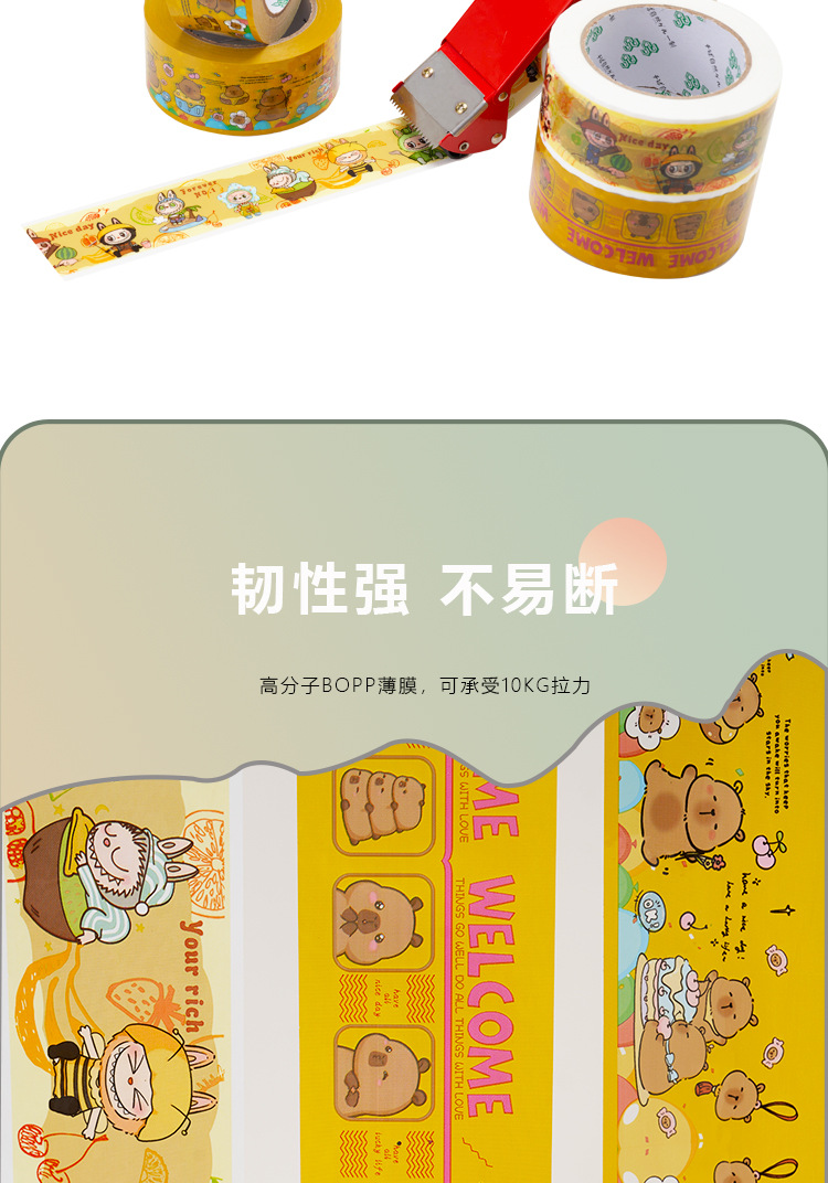 爆火款网红卡通封箱打包胶带拉布布卡皮巴拉可爱呆萌加粘加厚胶纸