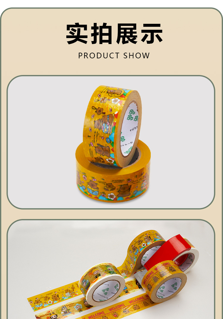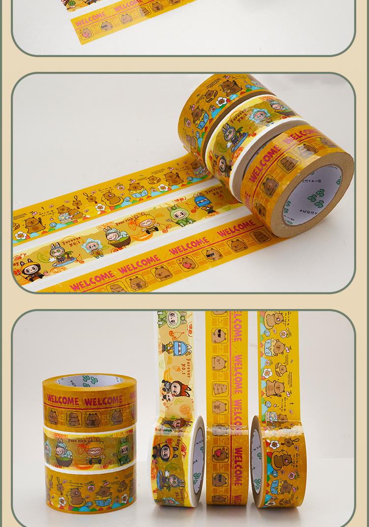 漫画シールテープ宅配梱包テープシール包装テープ固定ロゴ高粘カラー全箱卸売り