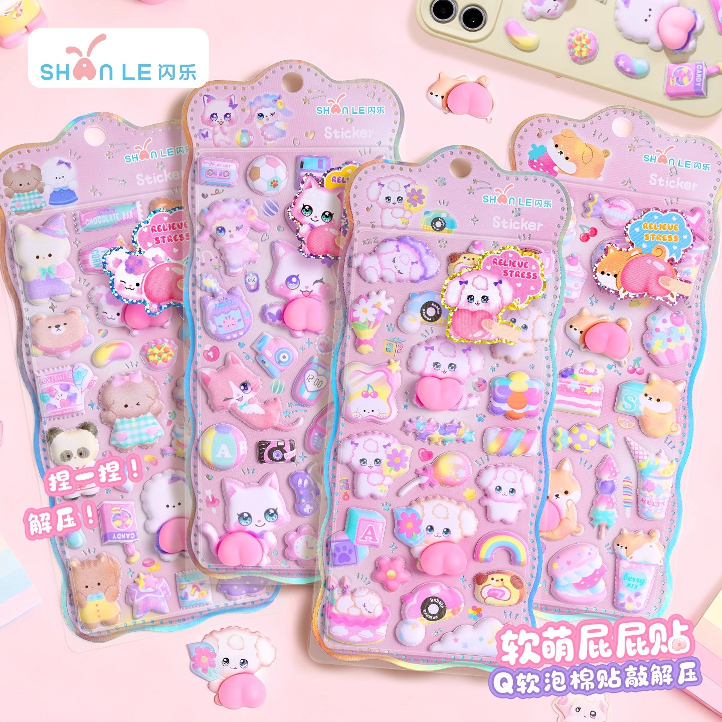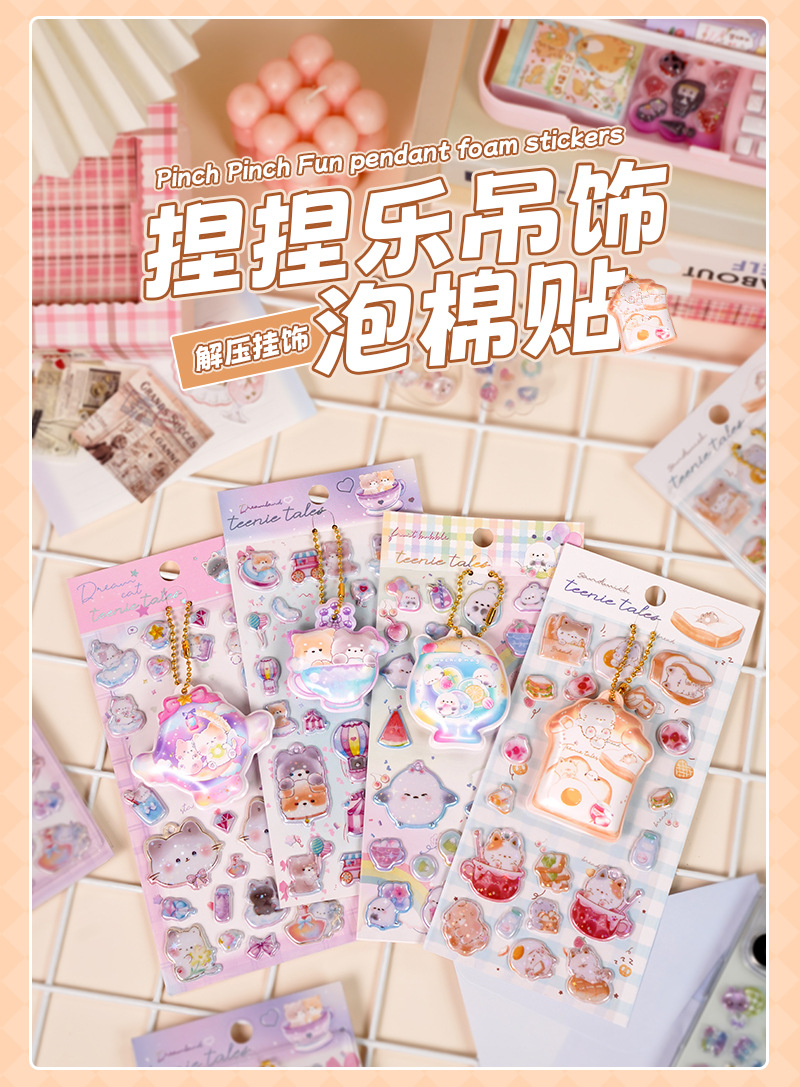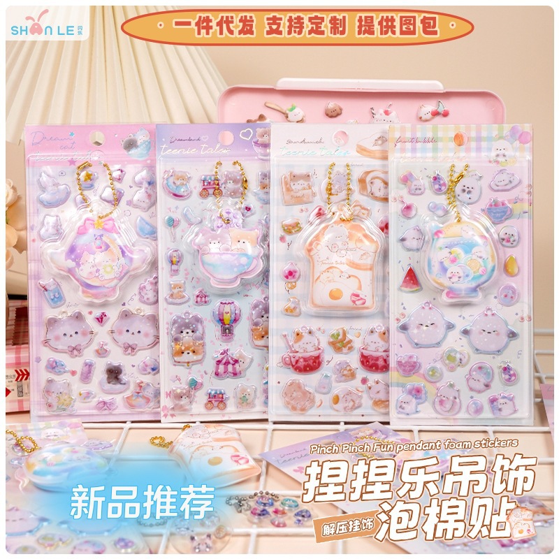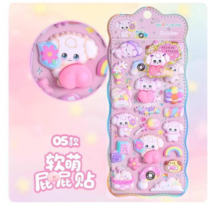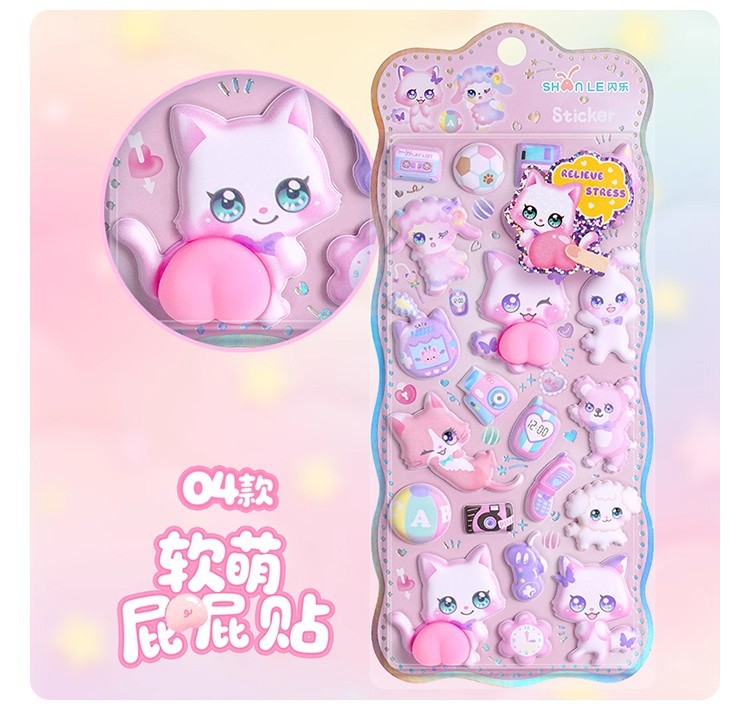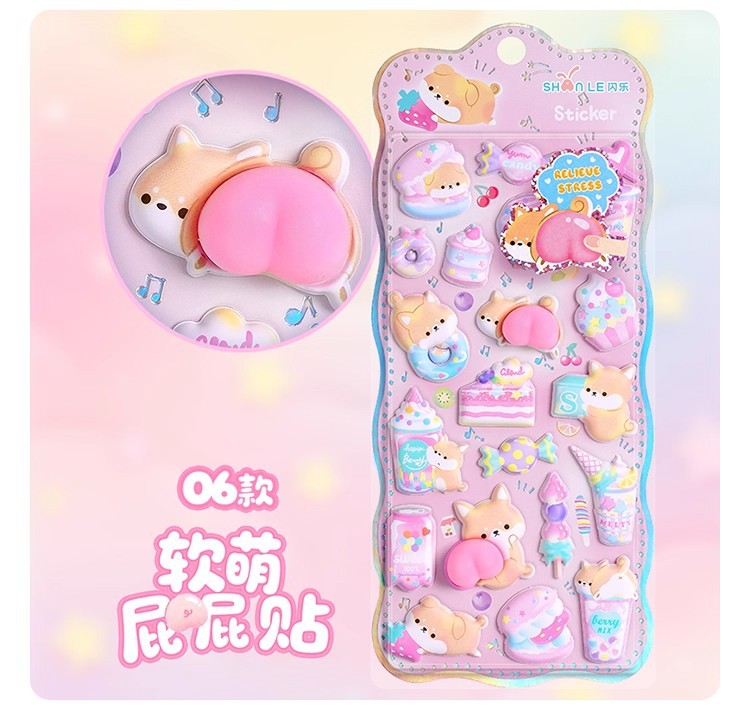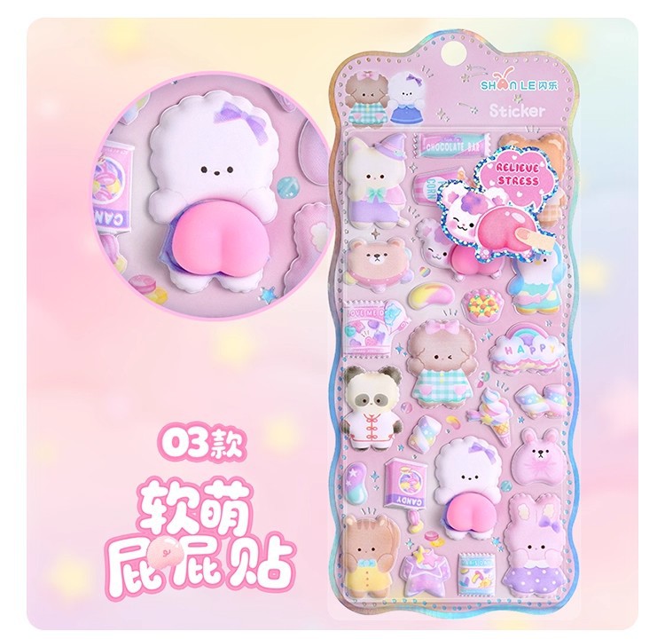 闪乐捏捏乐吊饰屁屁贴纸3D立体海绵儿童少女可爱卡通解压泡泡贴画