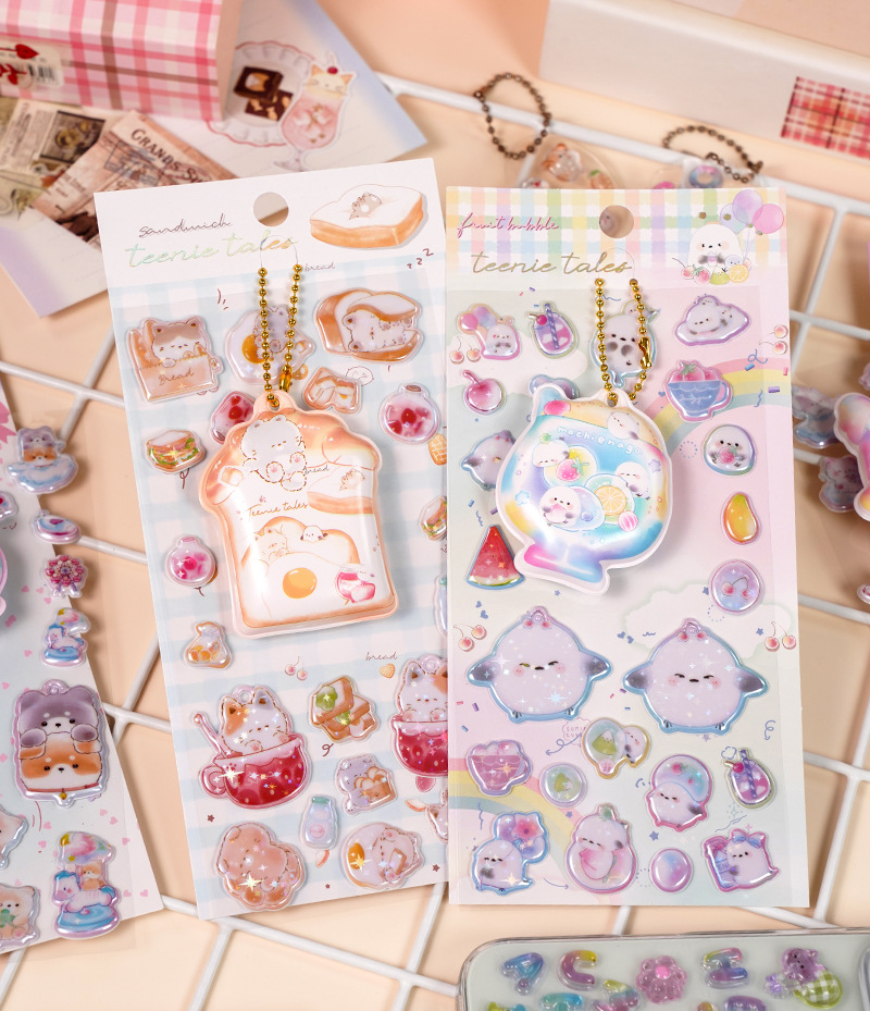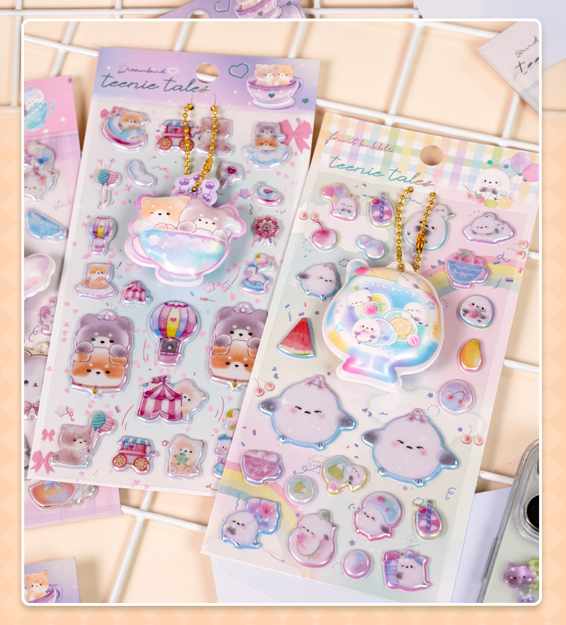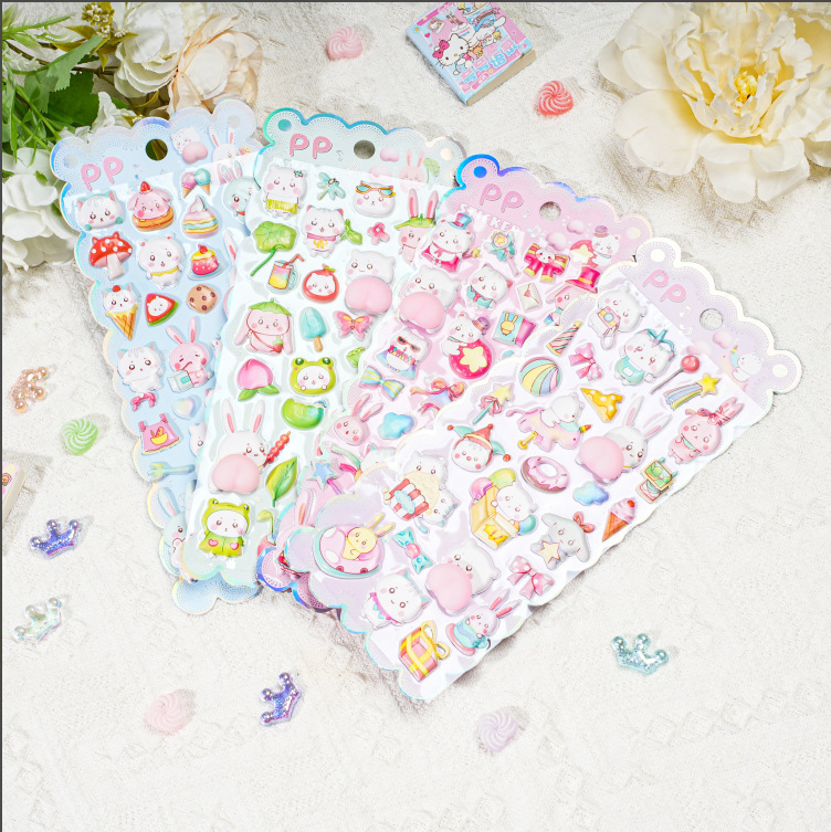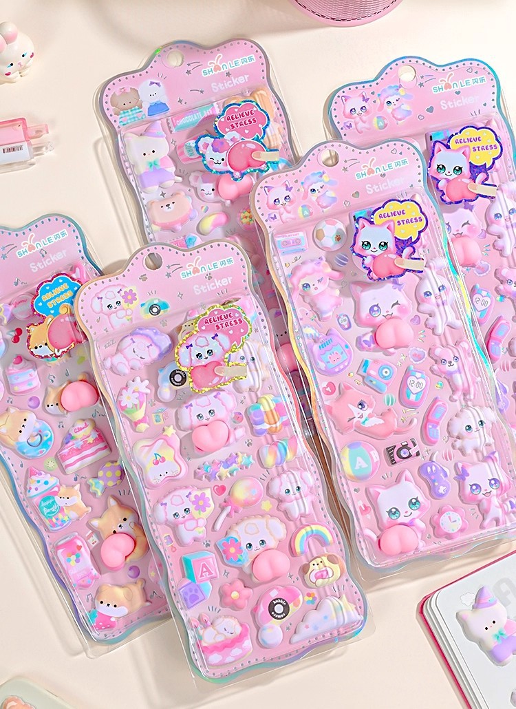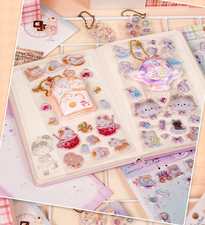 閃楽新作3d立体レリーフ水晶シール小清新ドーパミン子供漫画猫ステッカー