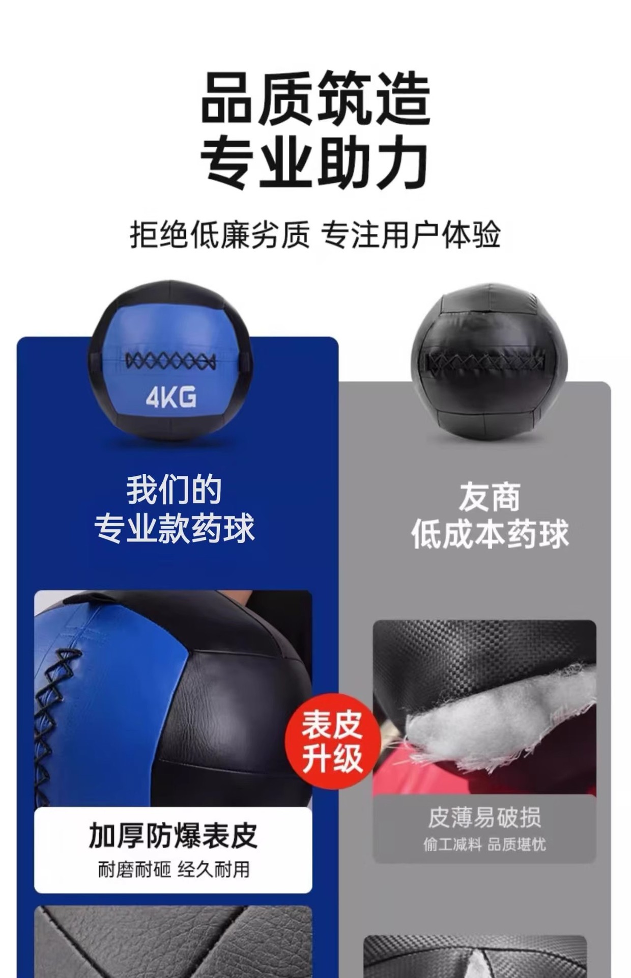 厂家跨境爆发平衡训练实心药球非弹力软壁球亚马逊健身重力球墙球