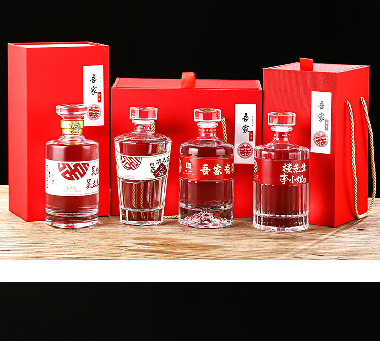 新款喜酒瓶结婚专用透明白酒瓶空瓶婚宴空酒瓶喜宴礼盒包装全套