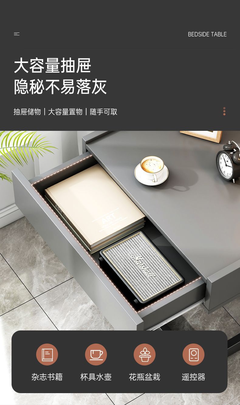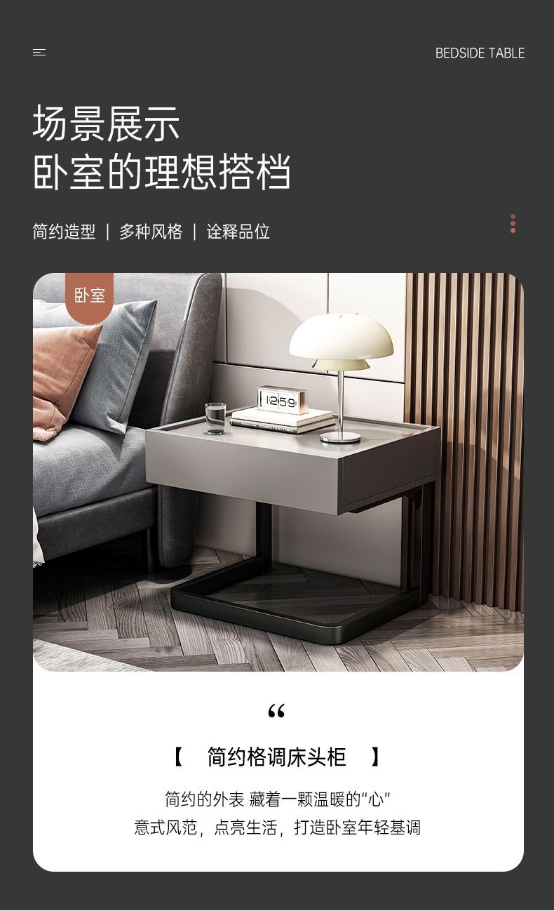 イタリアのモダンなミニマリストスタイルの収納ベッドサイドテーブルライト高級寝室ホーム収納スタイル組み立て簡単インストール