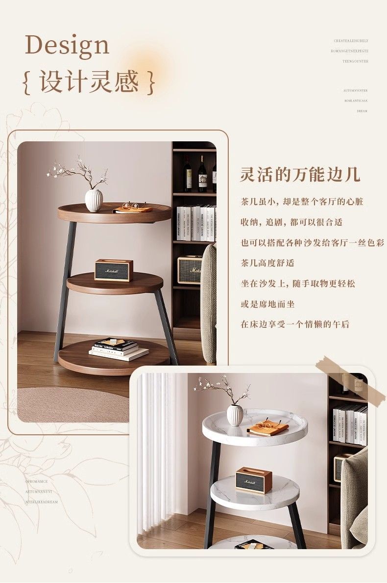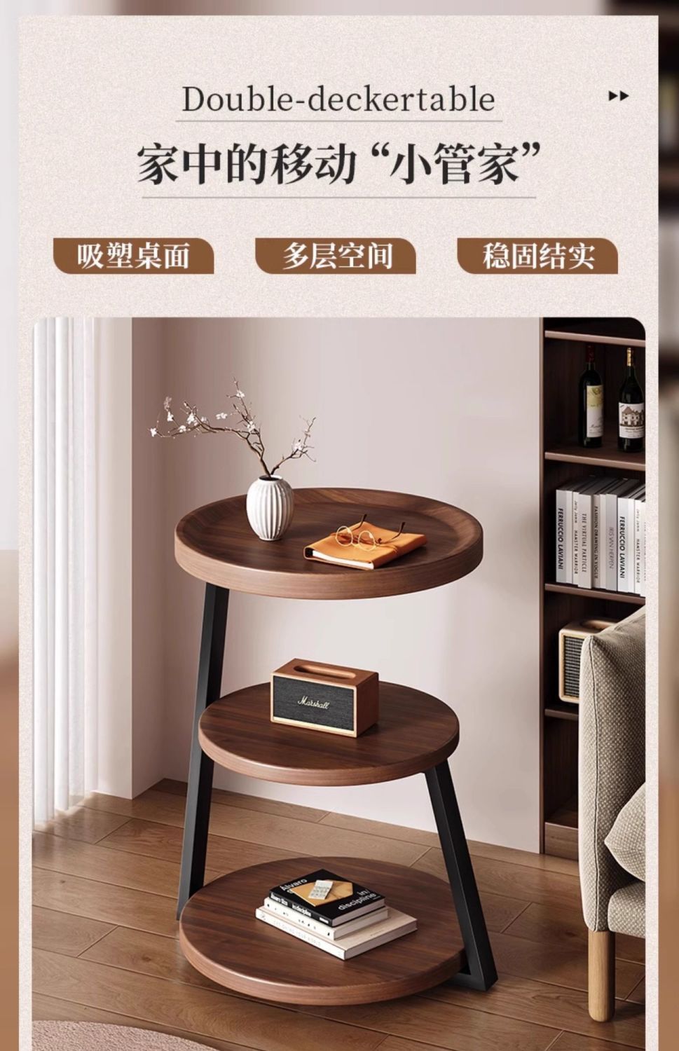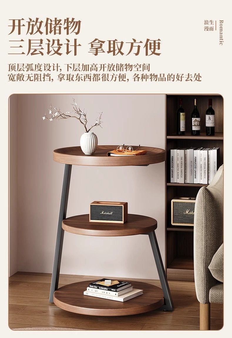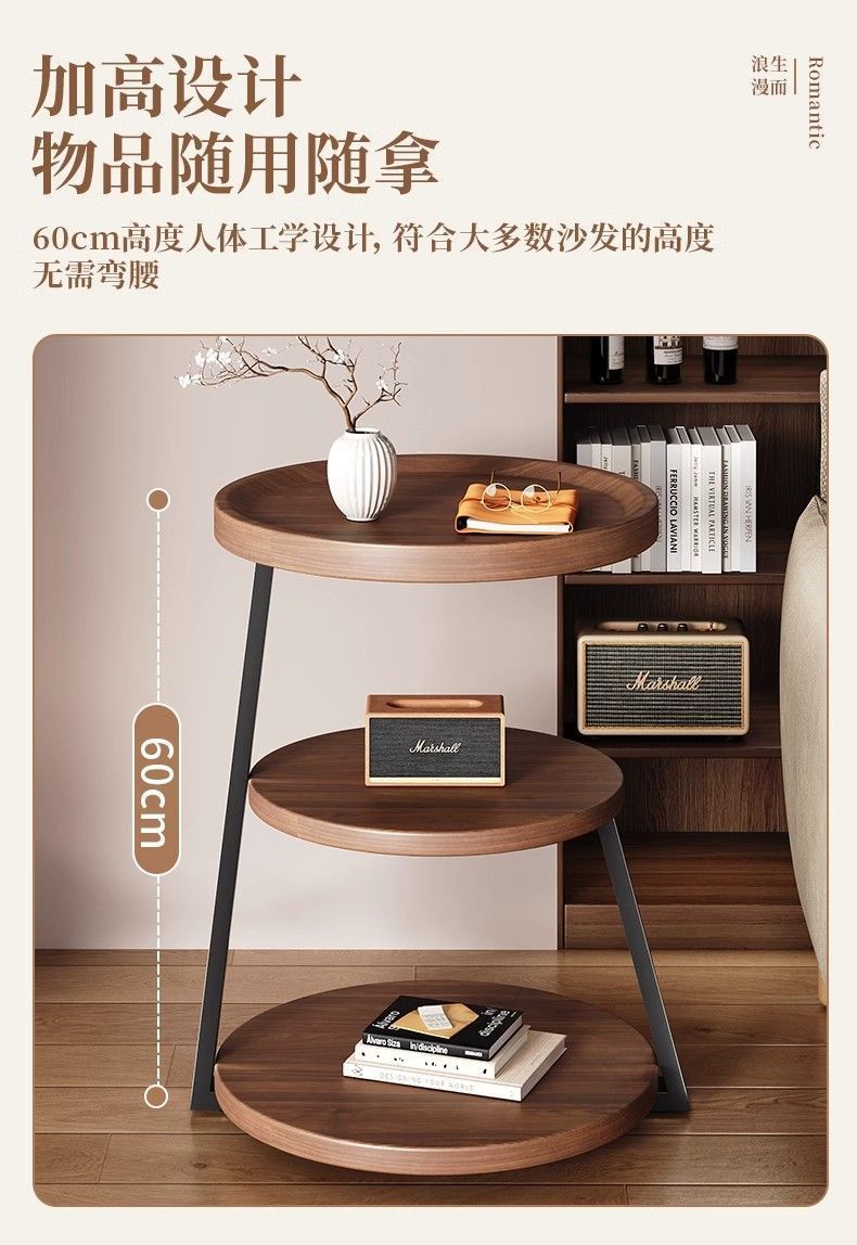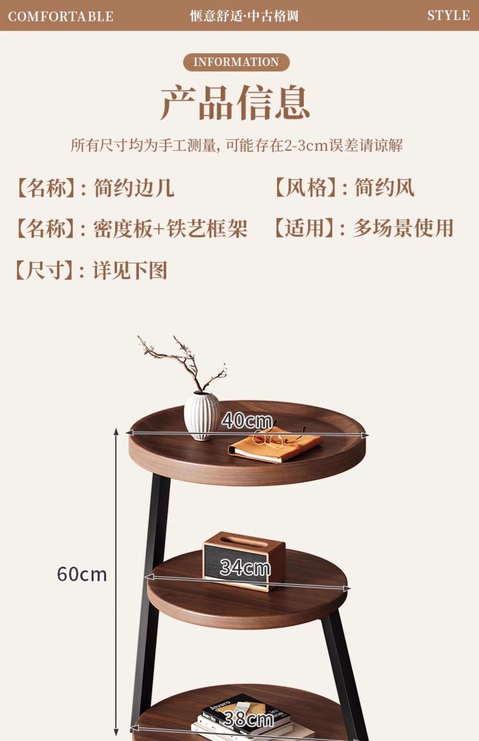 中世スタイルのベッドサイドテーブル収納ラック多層ソファサイドテーブルコーヒーテーブルリビングルームホーム小さなアパートラウンドサイドテーブルコーナーテーブル