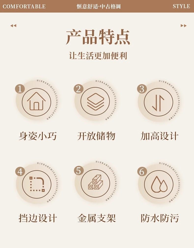 中古风床头柜卧室家用小户型床边柜多层圆形床头置物架小众设计感