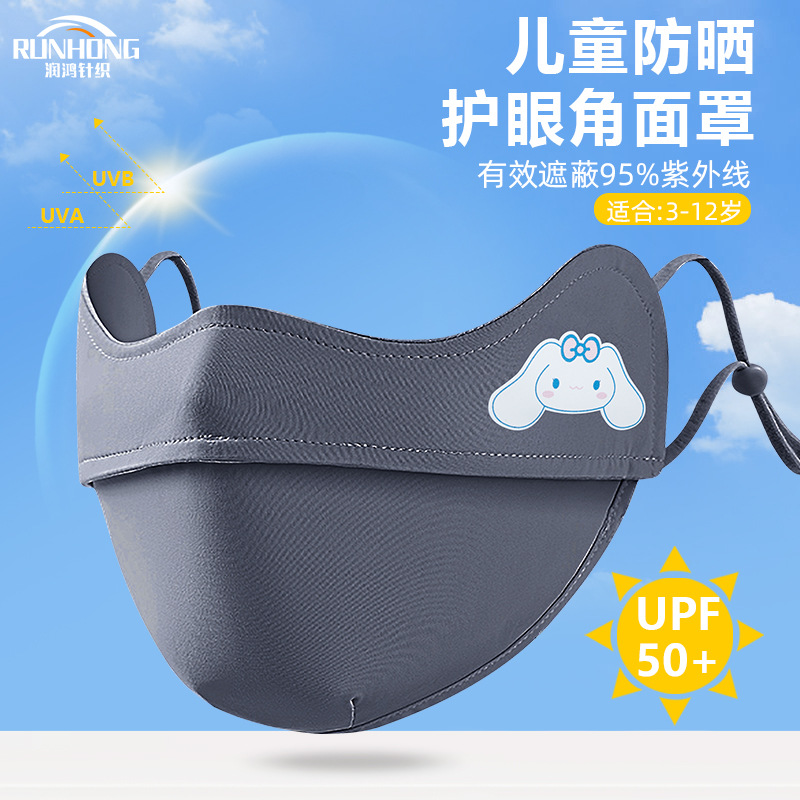 子供用アイスマスク日焼け止めかわいいアニメ男女中童夏通気ナイロン紫外線防止マスク