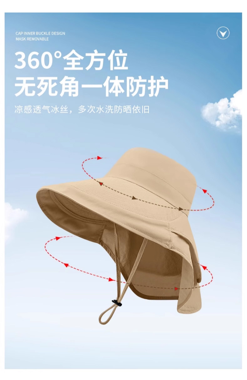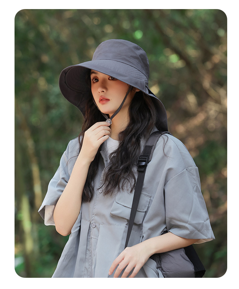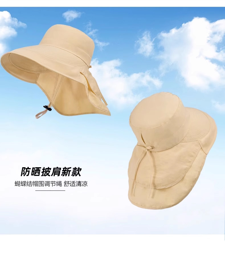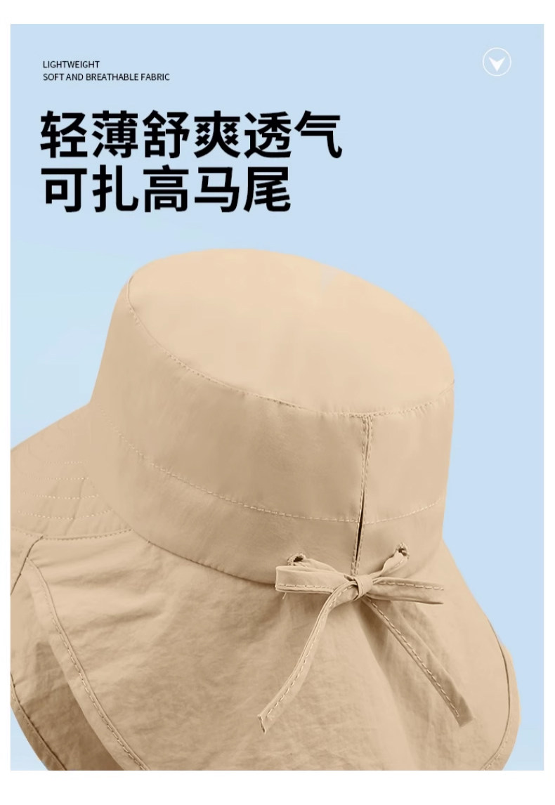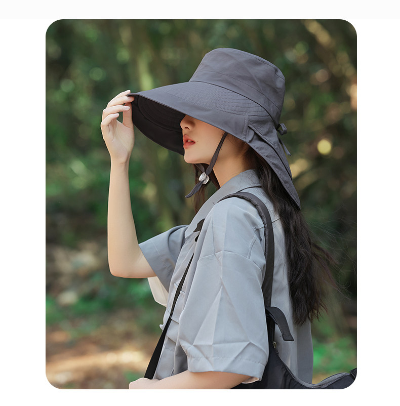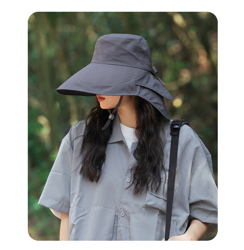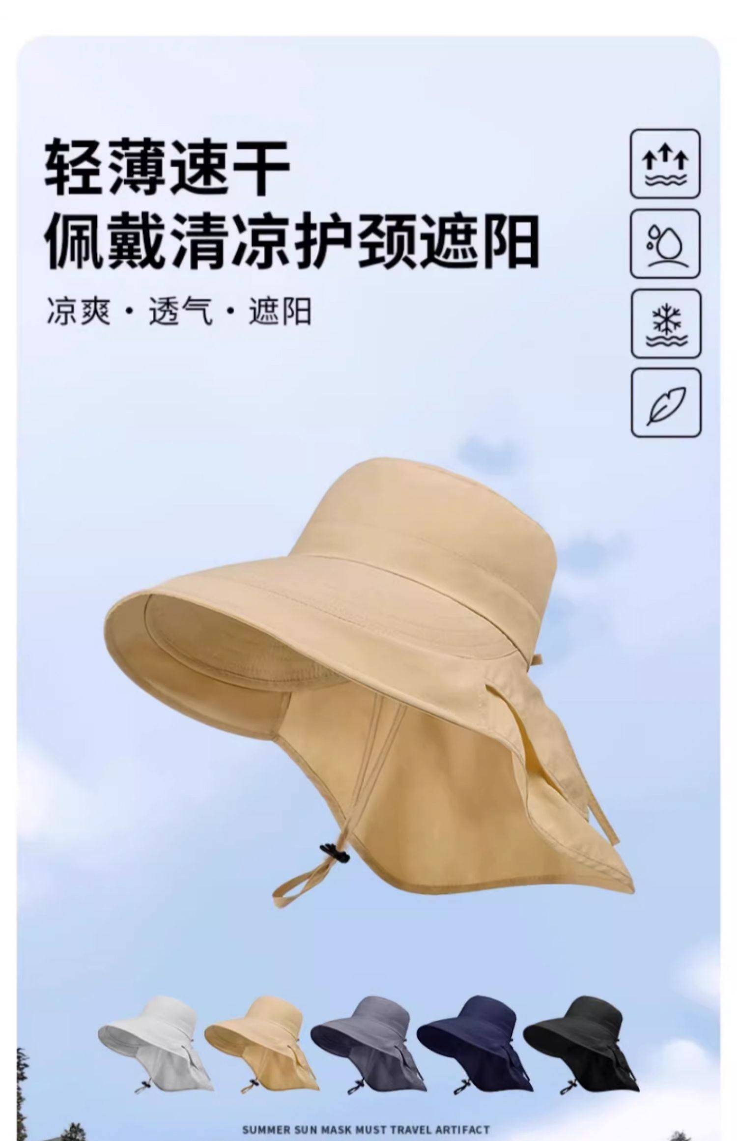 防晒帽子女夏季遮阳帽户外骑行护颈太阳帽大檐透气折叠登山渔夫帽