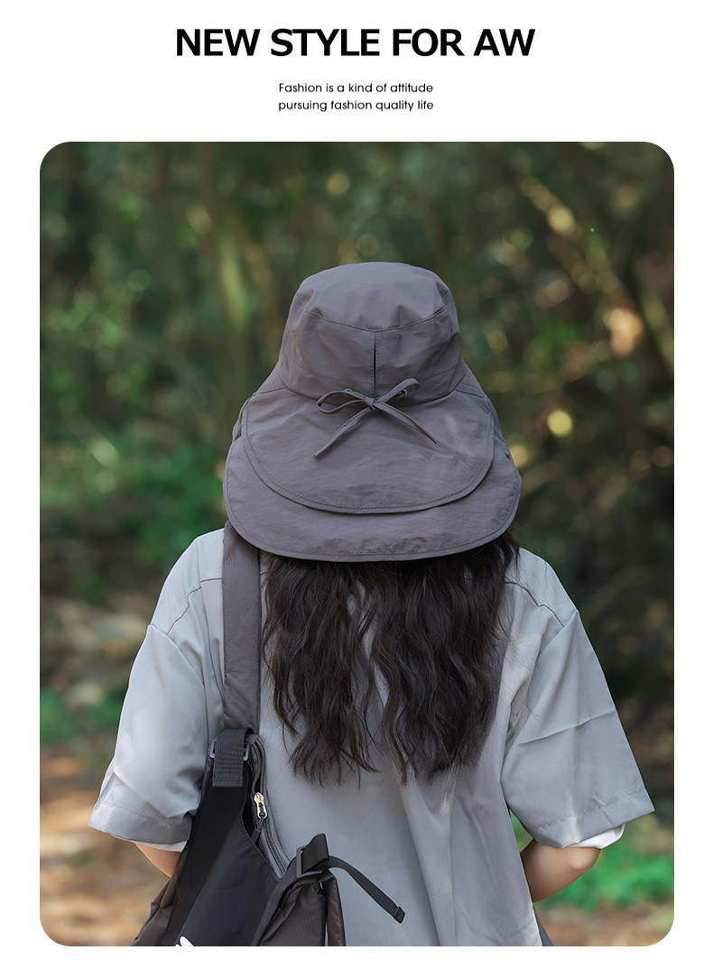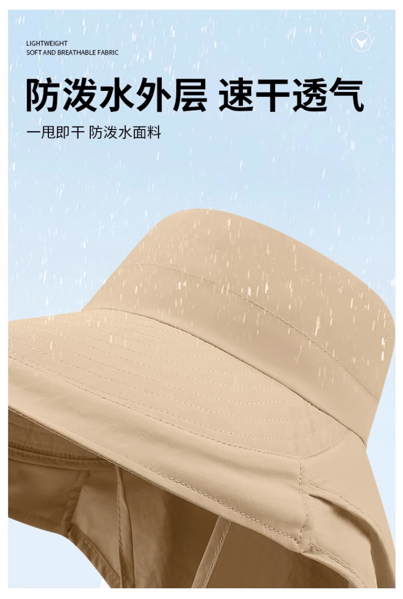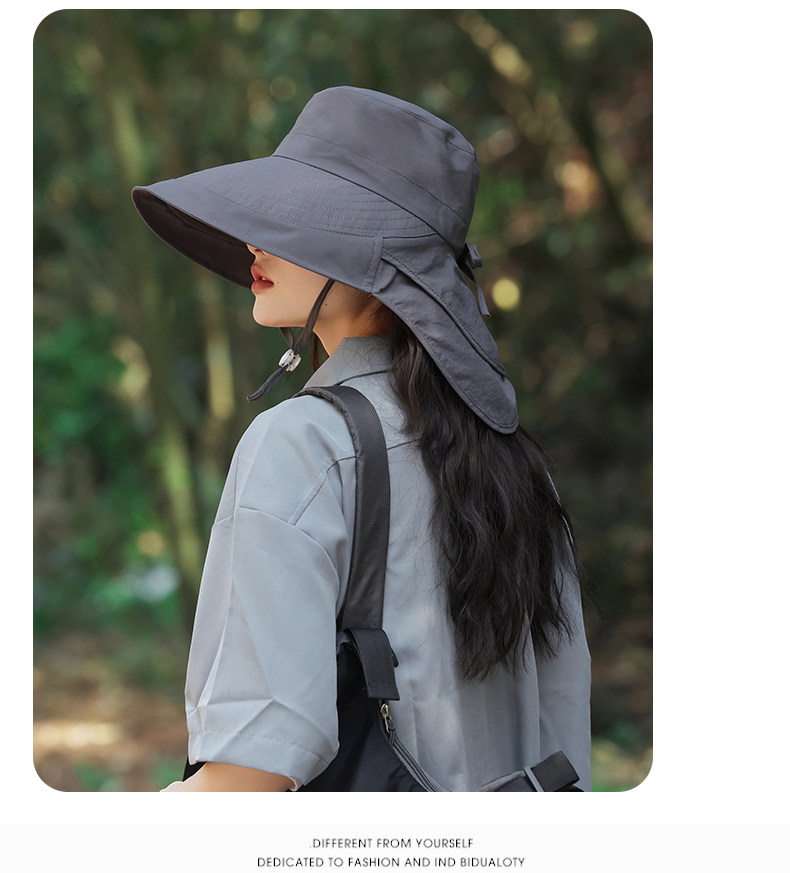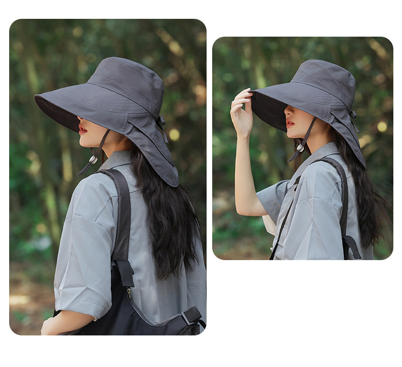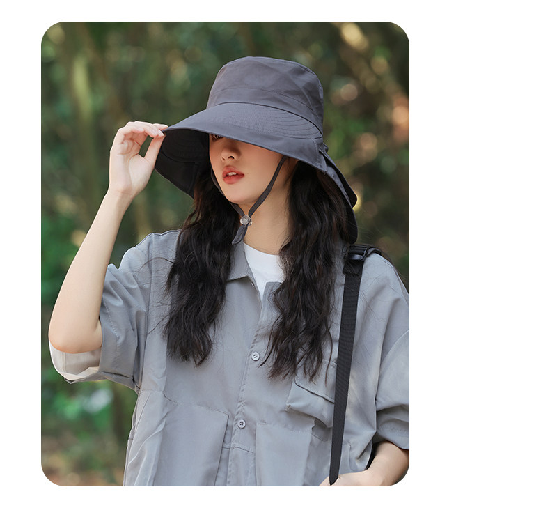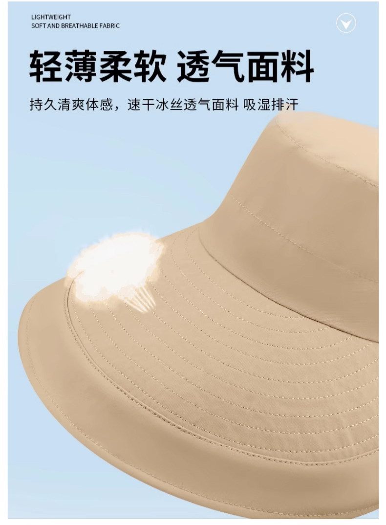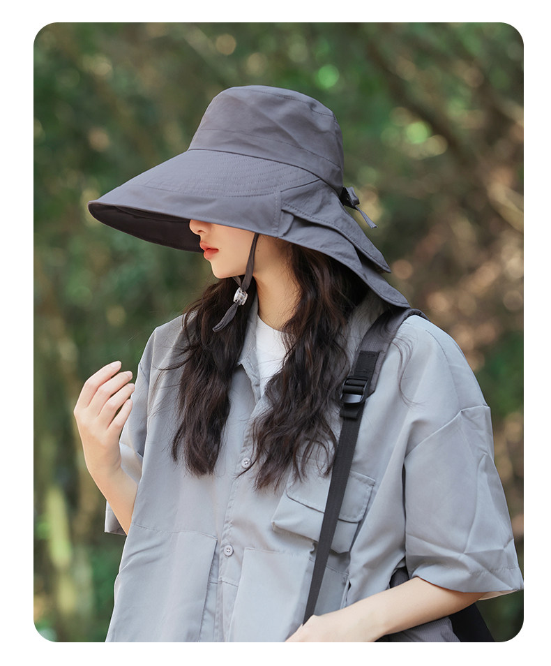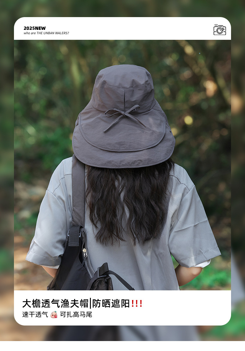 防晒帽子女夏季遮阳帽户外骑行护颈太阳帽大檐透气折叠登山渔夫帽