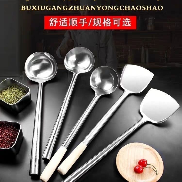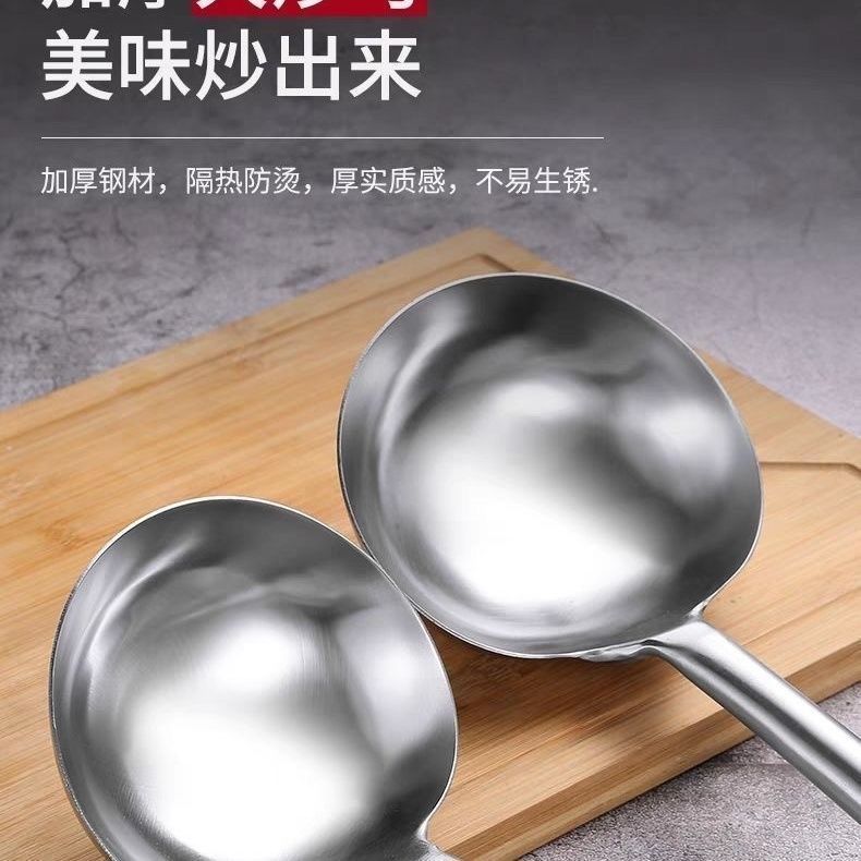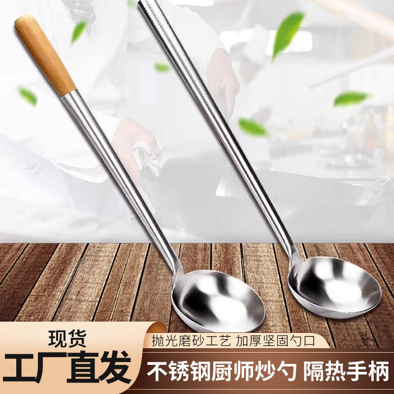 不锈钢炒勺厨师专用炒菜勺子家用长柄汤勺大号商用粥勺分菜勺家用
