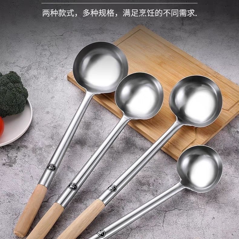 ステンレス料理人スプーン炒めスプーン木柄全鋼スプーン炒め鍋専用スプーン大スプーン鉄スプーン殻大スプーン