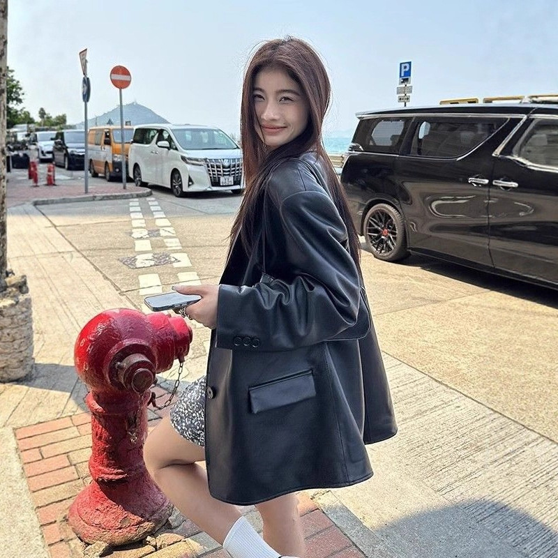 美拉德高级感复古西装皮衣外套女2025新款正肩PU美式潮流百搭夹克