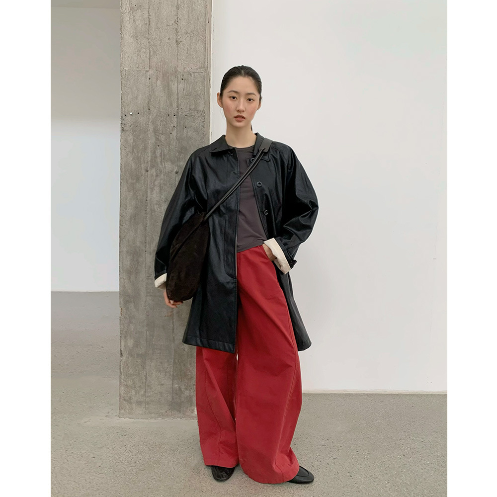 EVERTRUE 皮衣PU2025女装秋新款韩版翻简约宽松领中长款外套92305