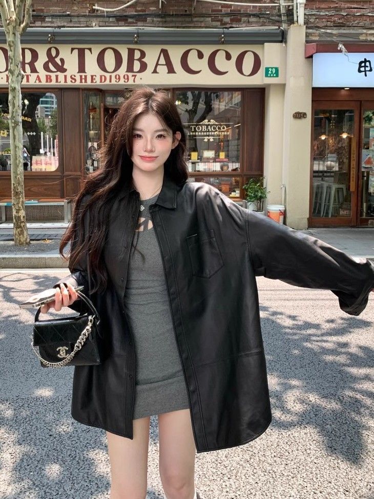 女性用ブラックレザージャケット2025秋冬新スタイルユニークで超見栄えの良いジャケットは今年小柄な人向けに人気です