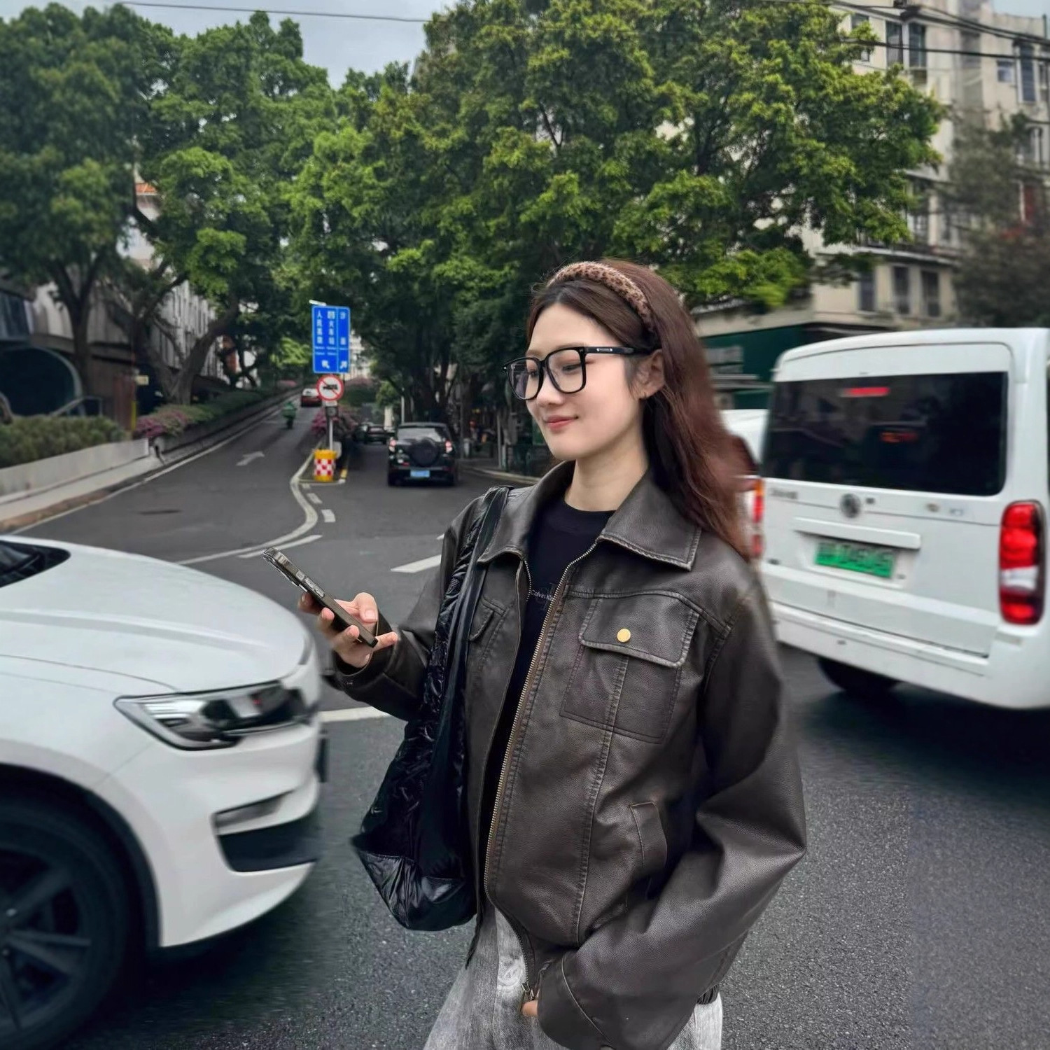 女性用ブラウンレザージャケット2025新作ハイエンドスタイル今年人気ジャケット小柄な人向け晩秋人気スタイル超見栄えの良い