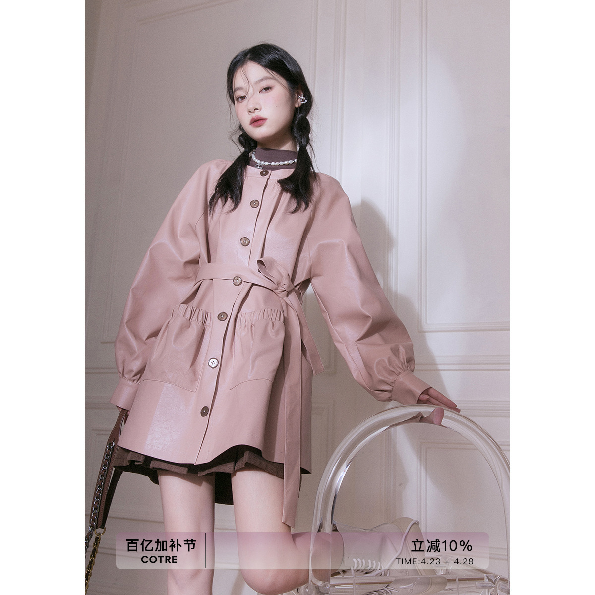COTRE 奶油石桃 秋季时髦甜酷感圆领插肩袖皮衣外套女春款