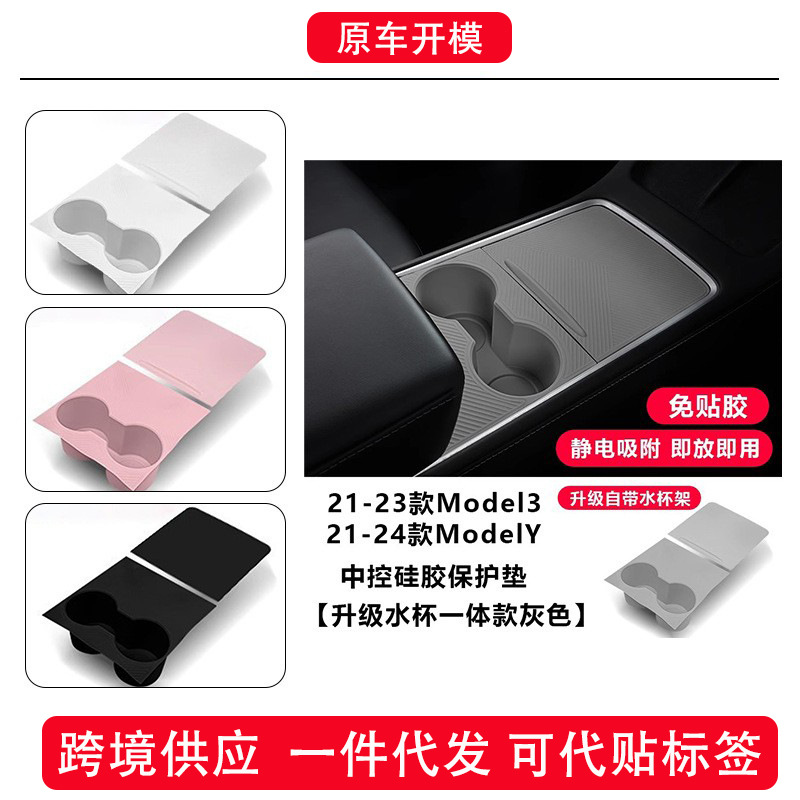 适用特斯拉硅胶中控垫焕新版ModelY/YL/3一体带水杯静电吸附中控