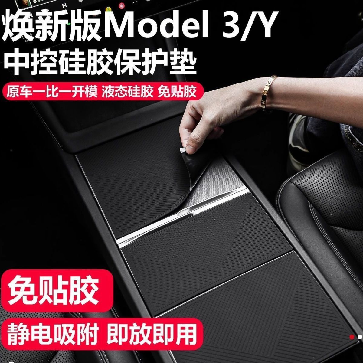 适用于特斯拉焕新版model3/Y中控硅胶垫静电吸附面板贴保护翻毛皮