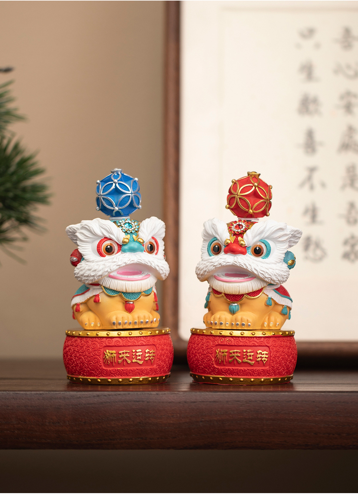 国潮佛山舞獅子覚醒獅子創意文創置物高級感デスクトップ茶卓装飾工芸品誕生日プレゼント