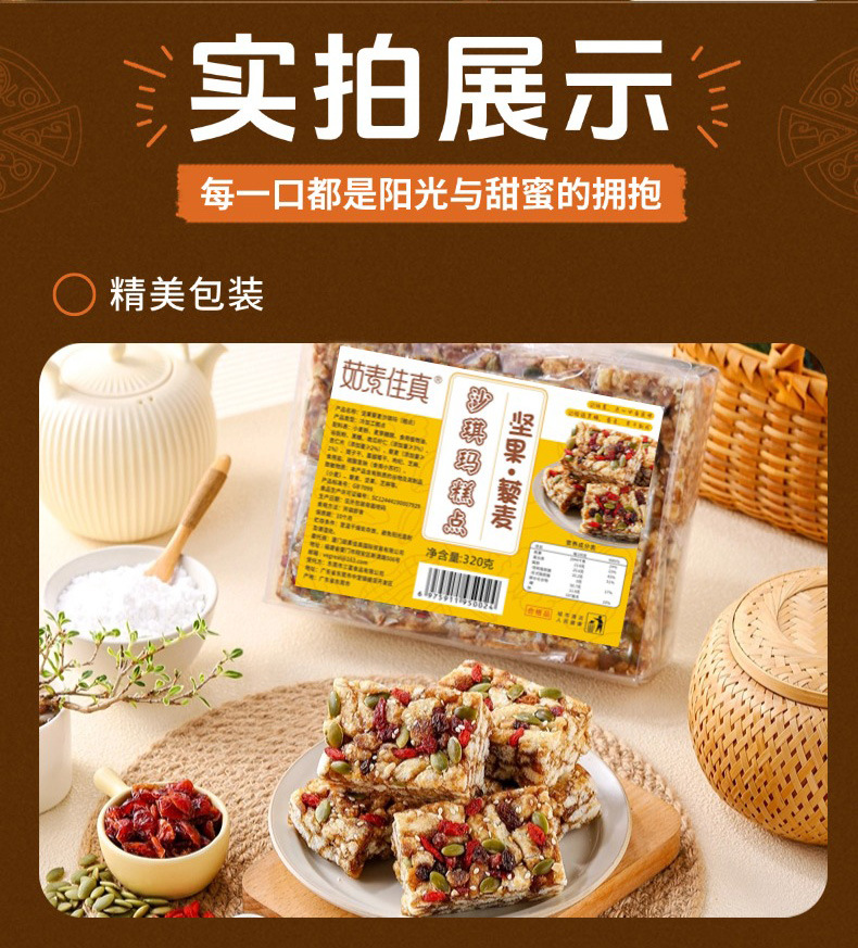 包装规格 茹素佳真坚果藜麦沙琪玛320g(16入),产品日期见内容页说明