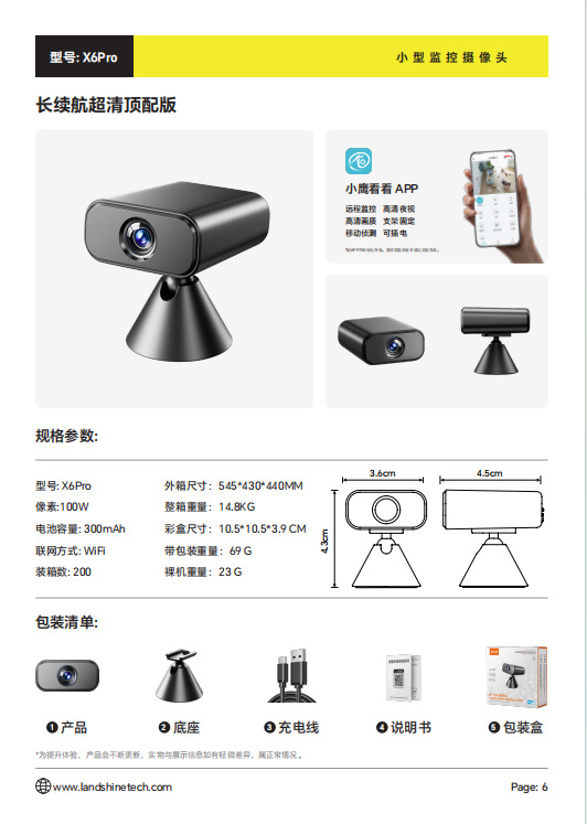 X6カメラ家庭用ワイヤレスWiFi携帯電話遠隔監視カメラ付き暗視録音録画hdセキュリティ監視