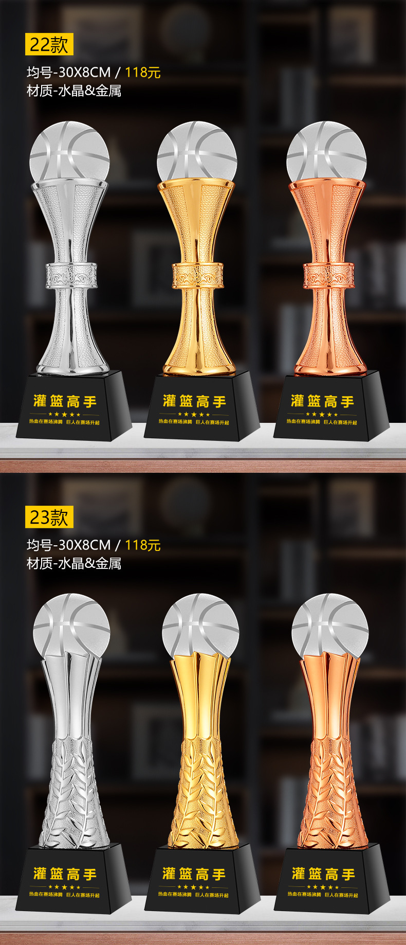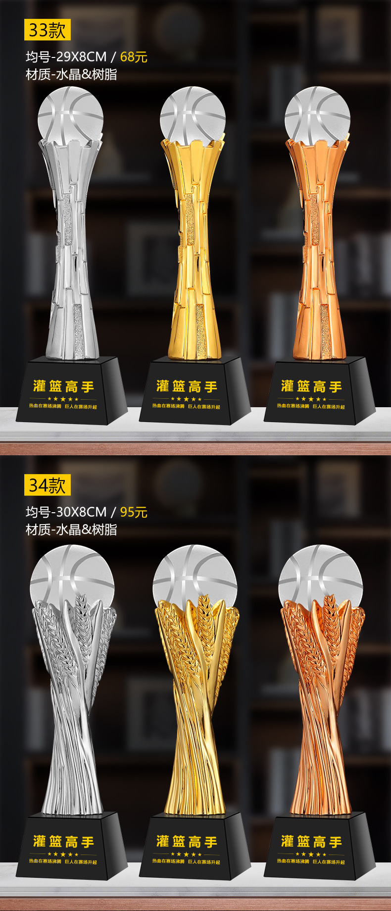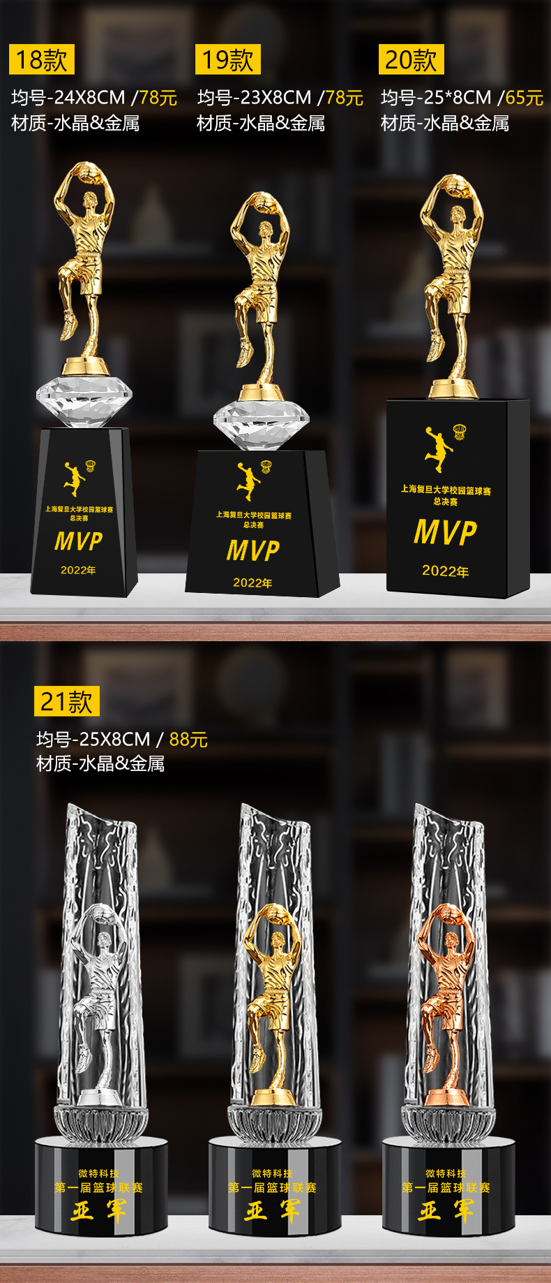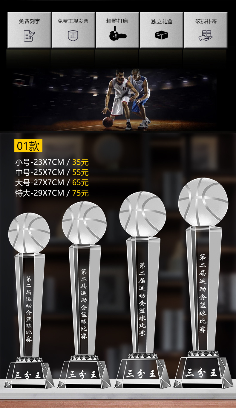バスケットボールゲームクリスタルトロフィー彫刻サッカーピンポンバドミントンイベント金、銀、銅メダル製造工場