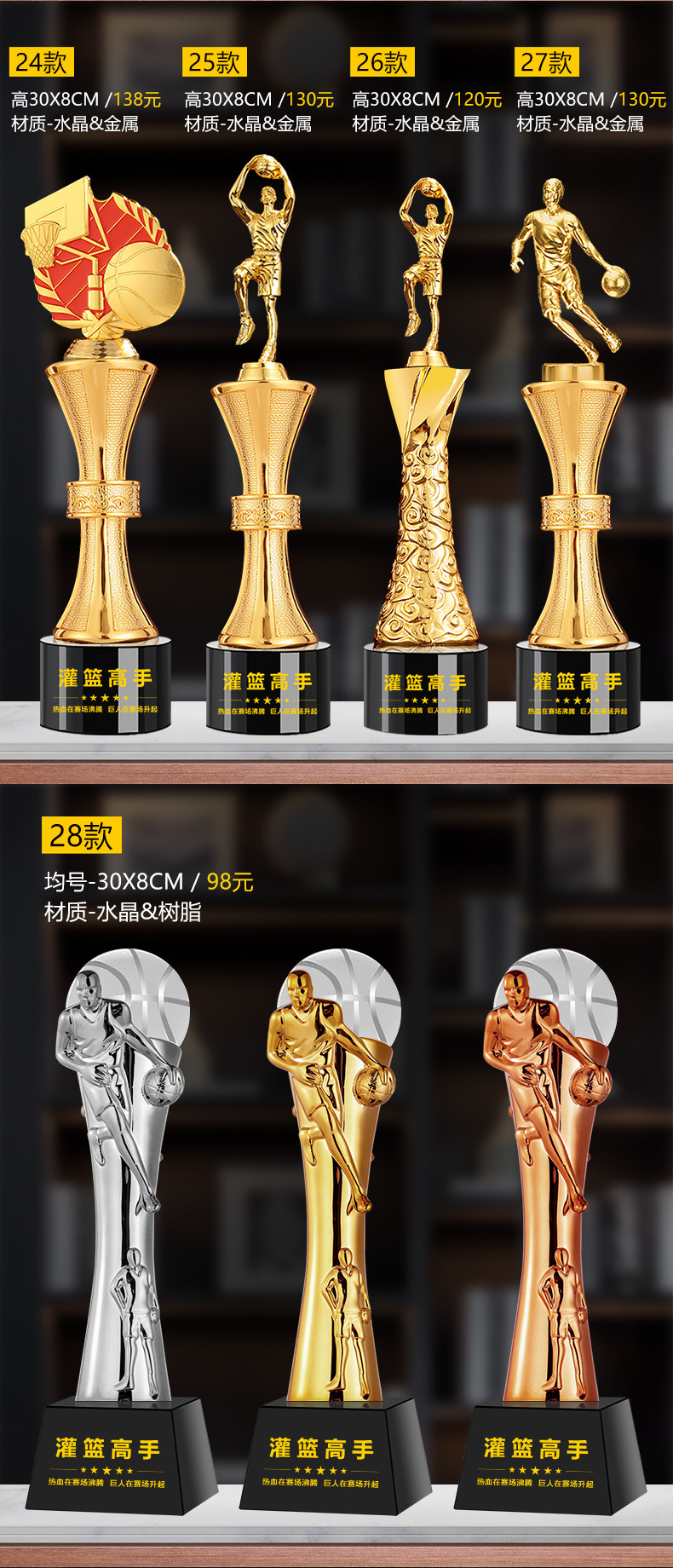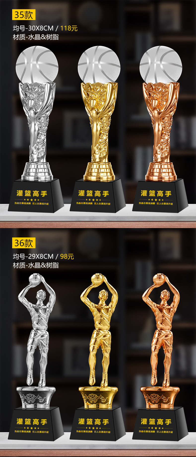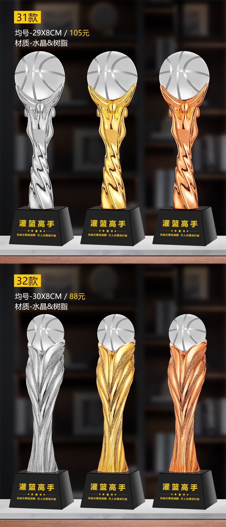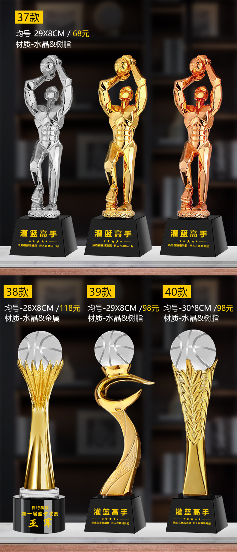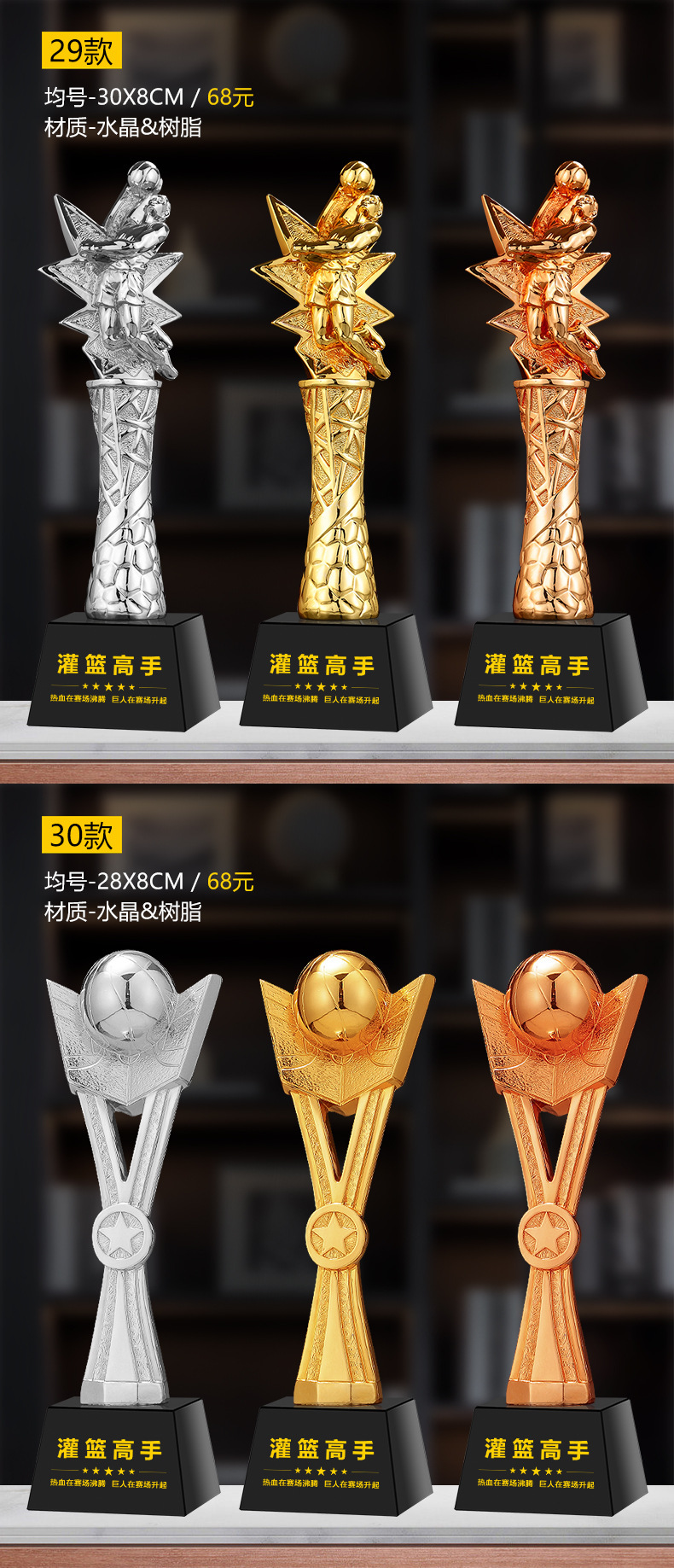 バスケットボールゲームクリスタルトロフィー彫刻サッカーピンポンバドミントンイベント金、銀、銅メダル製造工場