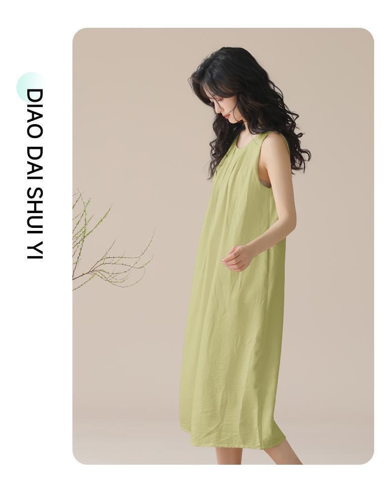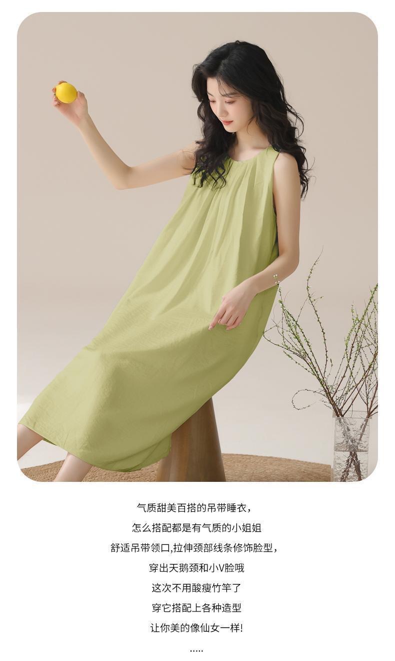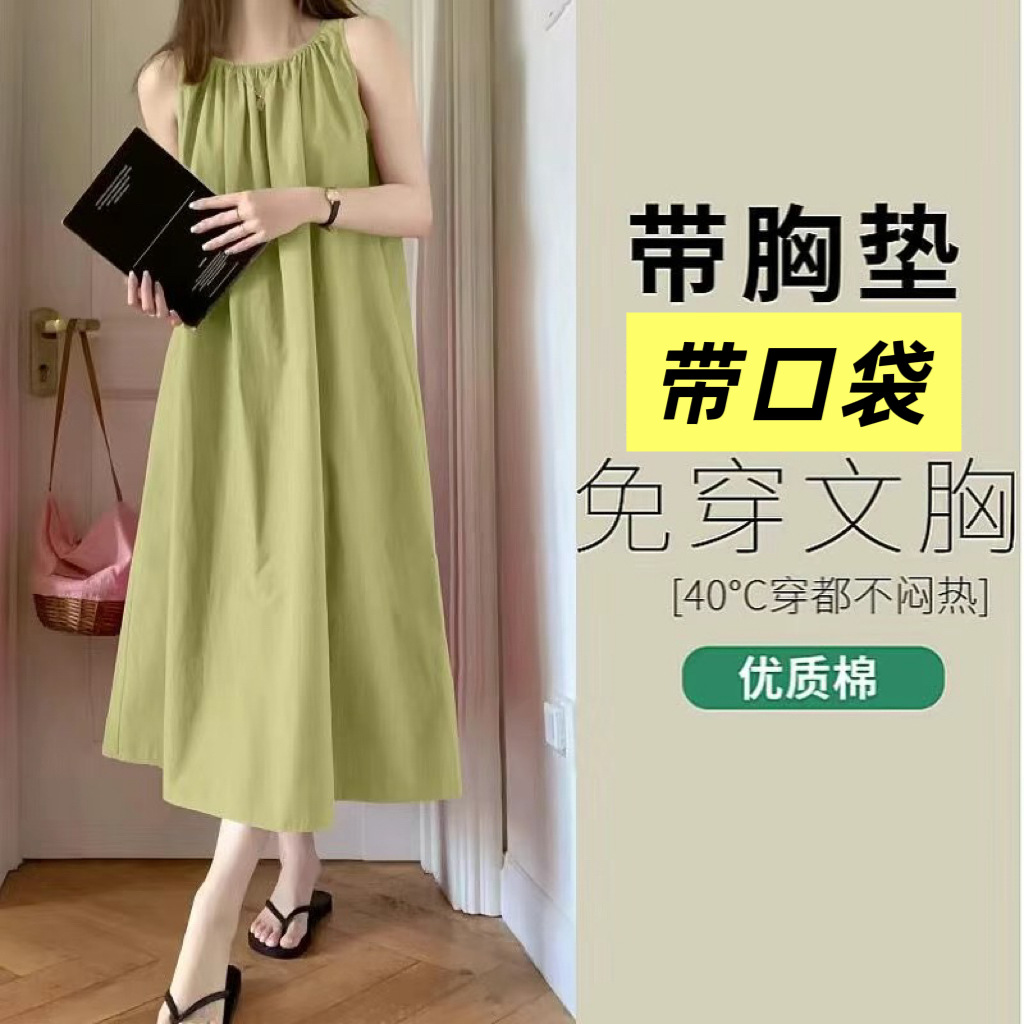 胸パッド付きクラウドコットンサスペンダーナイトガウン女性の夏の若者ノースリーブベストミドル丈スカート夏に着用できるドレス