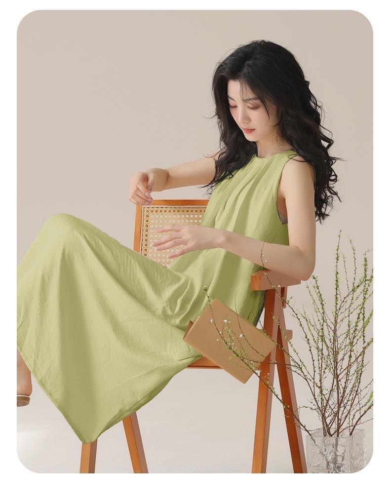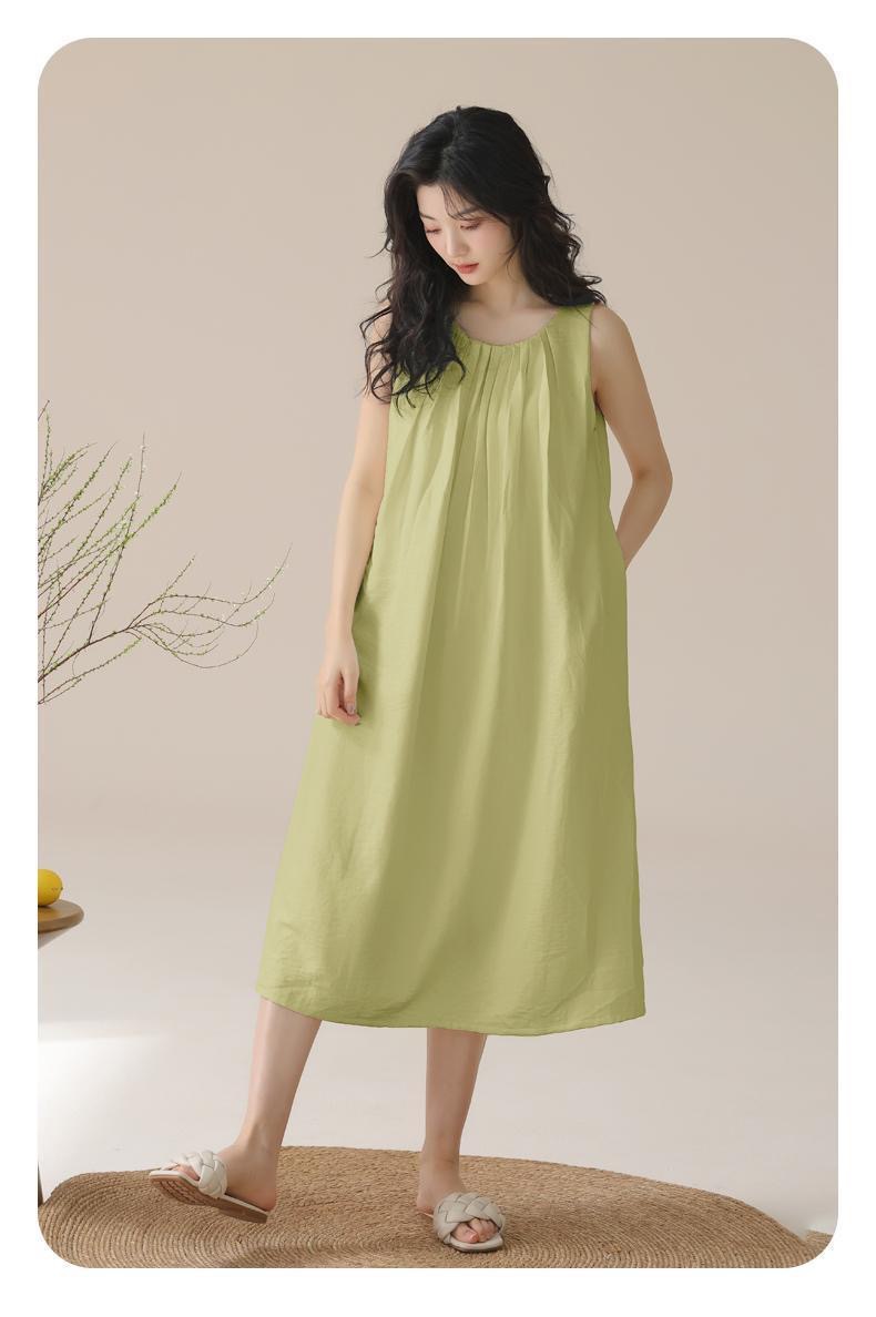 胸パッド付きクラウドコットンサスペンダーナイトガウン、女性用、夏用、中高年向けノースリーブベスト、ミドル丈スカート、夏に着用できるワンピース