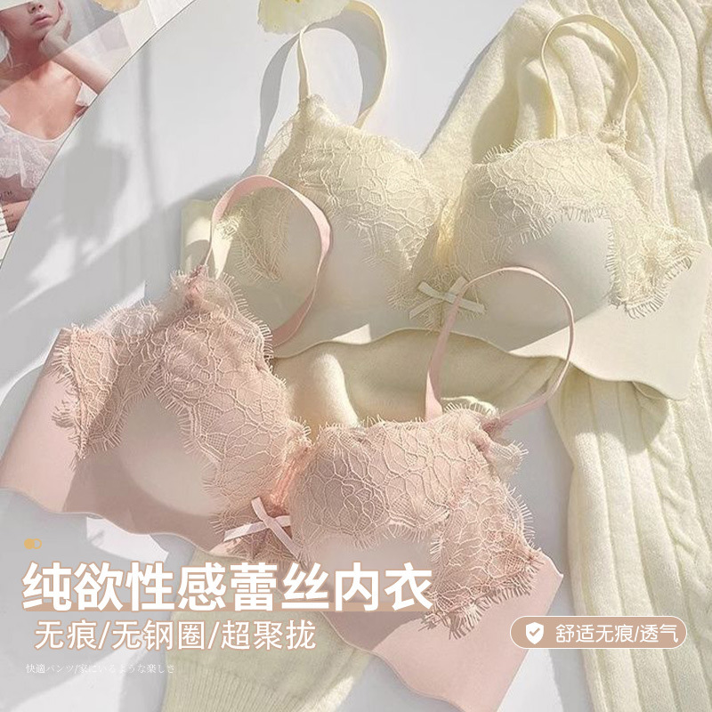 纯欲蕾丝内衣女小胸聚拢上托显大防下垂甜美文胸套装2025新款爆款