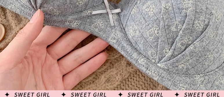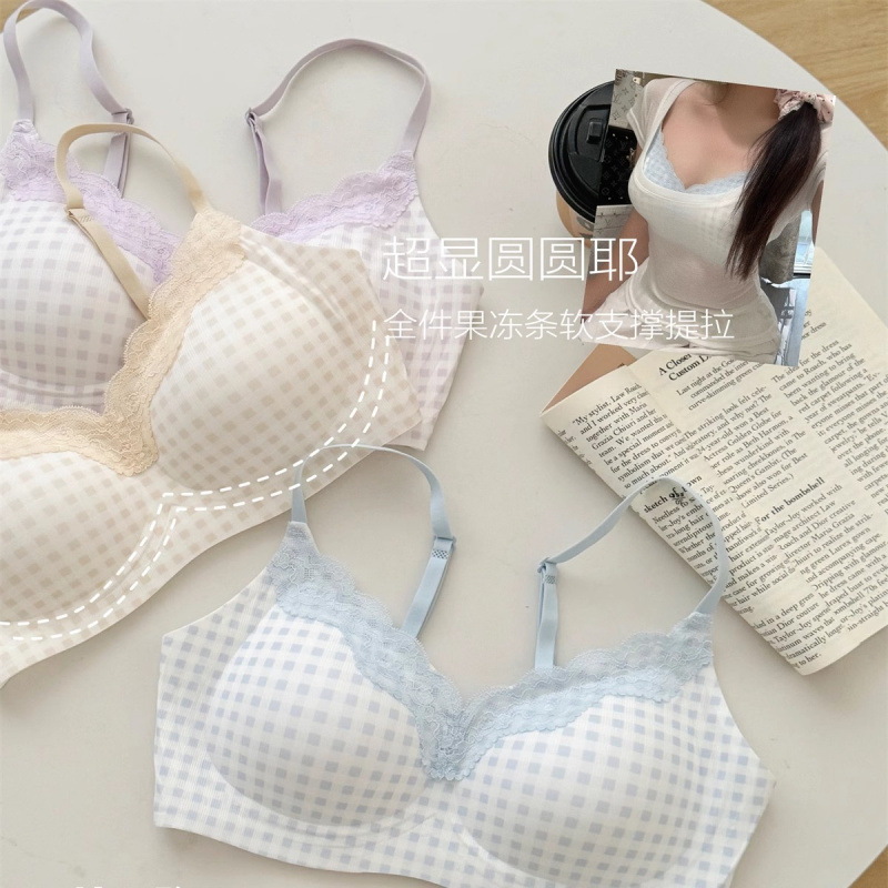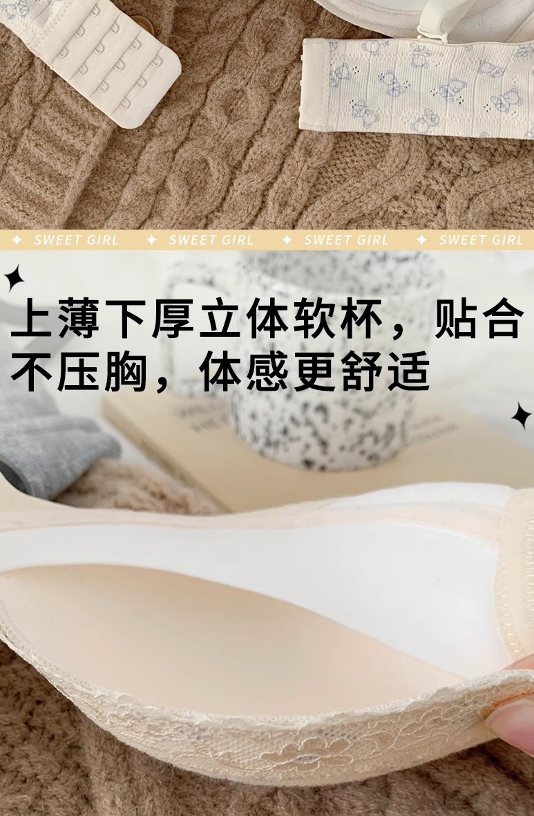 批发草莓麻薯温柔纯欲少女蕾丝边碎花内衣女小胸聚拢无钢圈文胸罩
