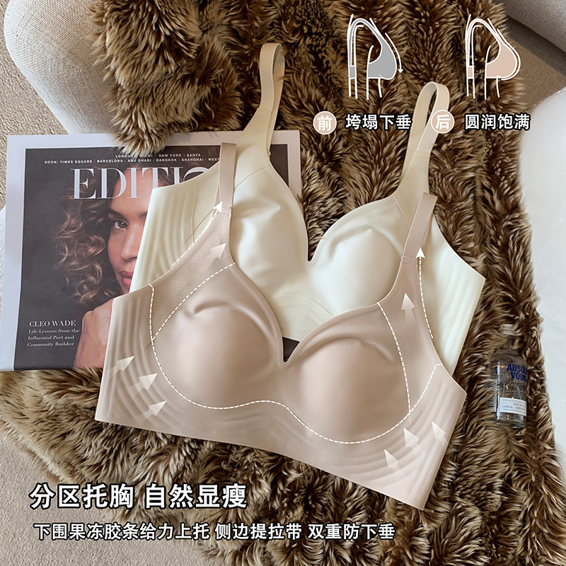 凉风舒服蕾 凉感无痕内衣女大胸显小胸聚拢夏季薄款果冻条文胸